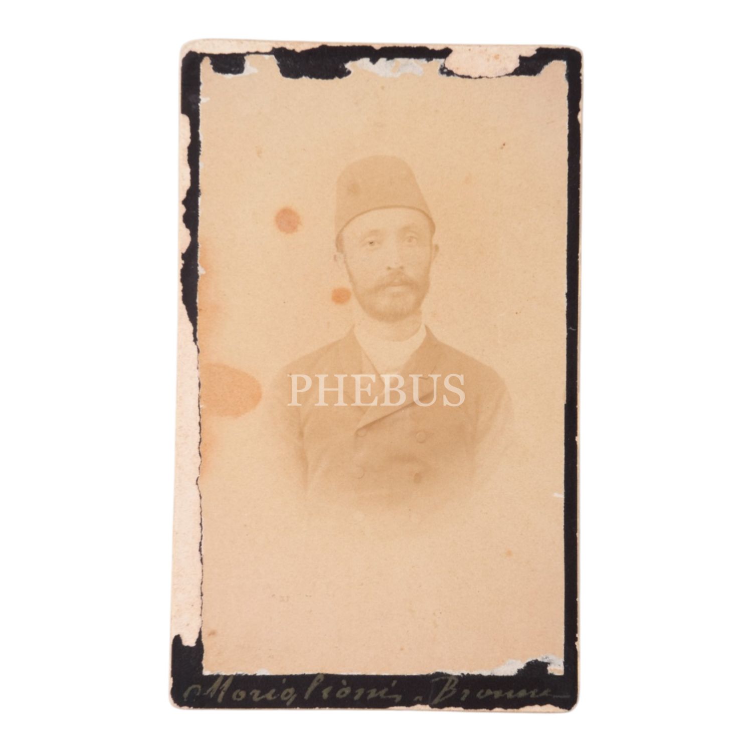 Fesli bir beyefendinin, kartvizit boy (CDV) portre fotoğrafı, 6,5x10 cm...