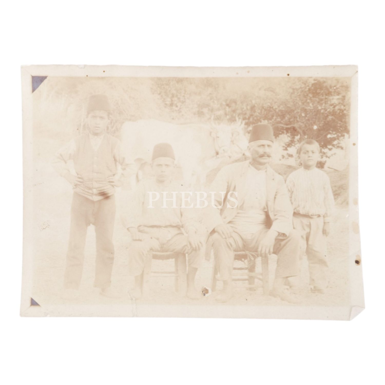 Çiftçi/hayvancı bir beyefendinin çocuklarıyla birlikte çekilmiş hatıra fotoğrafı, 12x9 cm...