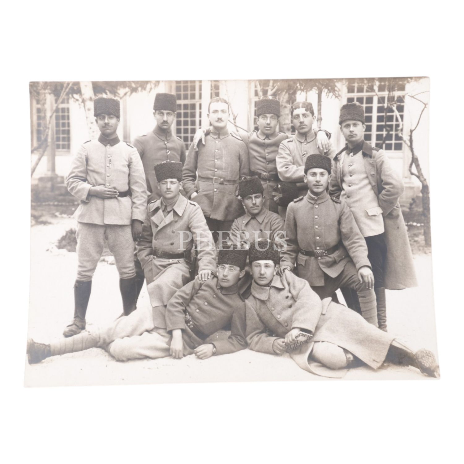 Cihan Harbi yıllarından bir grup Osmanlı subayının toplu hatıra fotoğrafı, 15x11 cm...