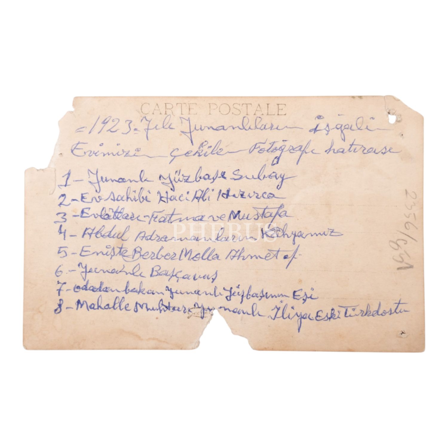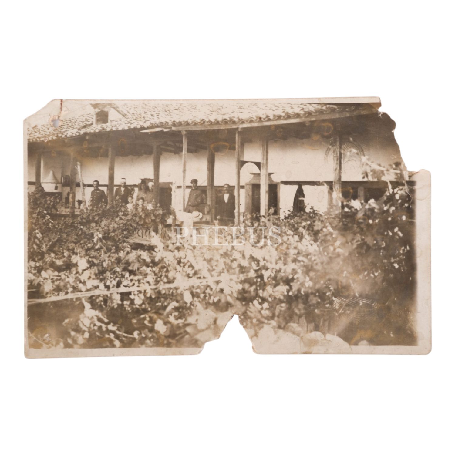 Yunan İşgali sırasında, Hacı Ali isimli bir beyefendinin evine gelen Yunan yüzbaşı ve maiyetinin evin balkonunda çekilmiş fotoğrafı, 14x9 cm...
