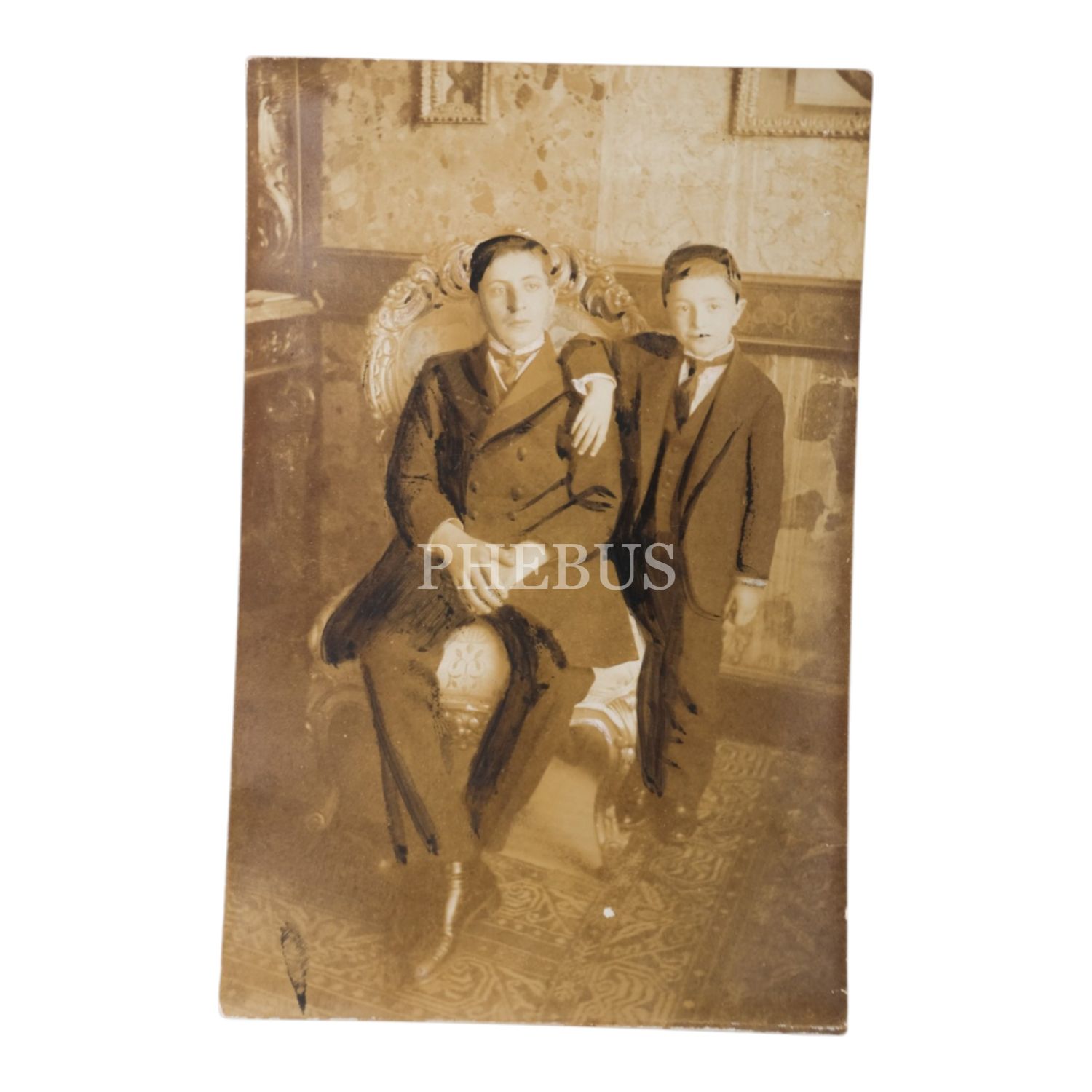 Genç bir delikanlı ile küçük bir çocuk, 9x14 cm...