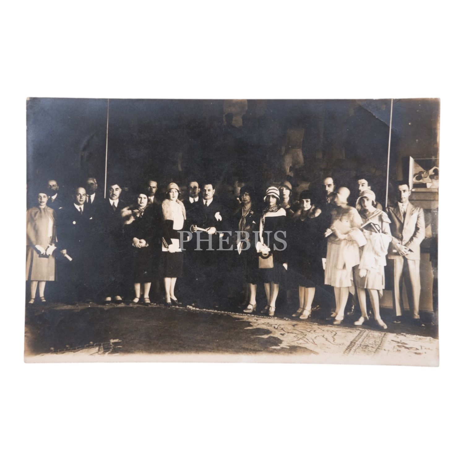 Erken Cumhuriyet döneminde bir sergi açılışında çekilmiş hatıra fotoğrafı, 14x9 cm....