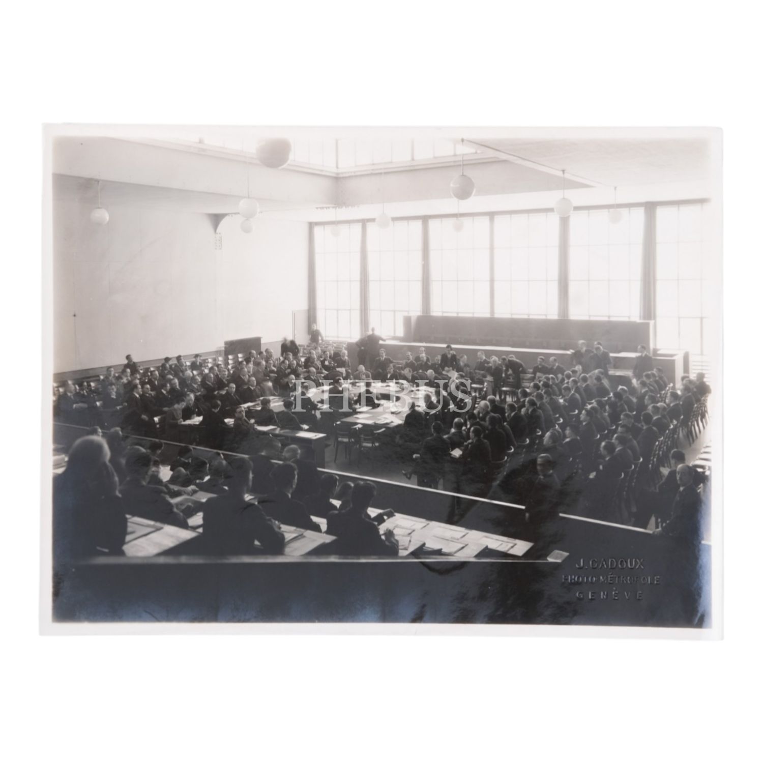 Cenevre´de düzenlenen diplomatik bir toplantıda çekilmiş, "J. Cadoux - Photo-Metropole - Geneve" soğuk damgalı fotoğraf, 23,5x17,5 cm...