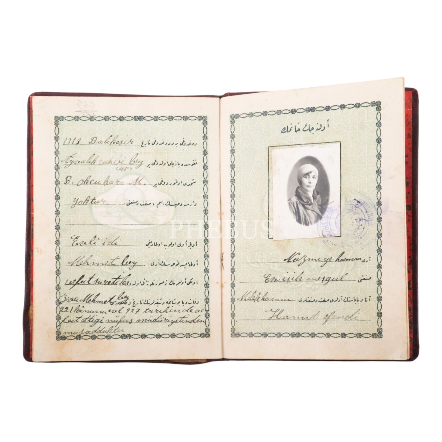Türkiye Cumhuriyeti Adliye Vekaleti tarafından Nazmiye Hanım ve Mehmet Bey adına düzenlenmiş, Türk Tayyare Cemiyeti filigranlı evlenme cüzdanı, 1929, 12x17 cm...