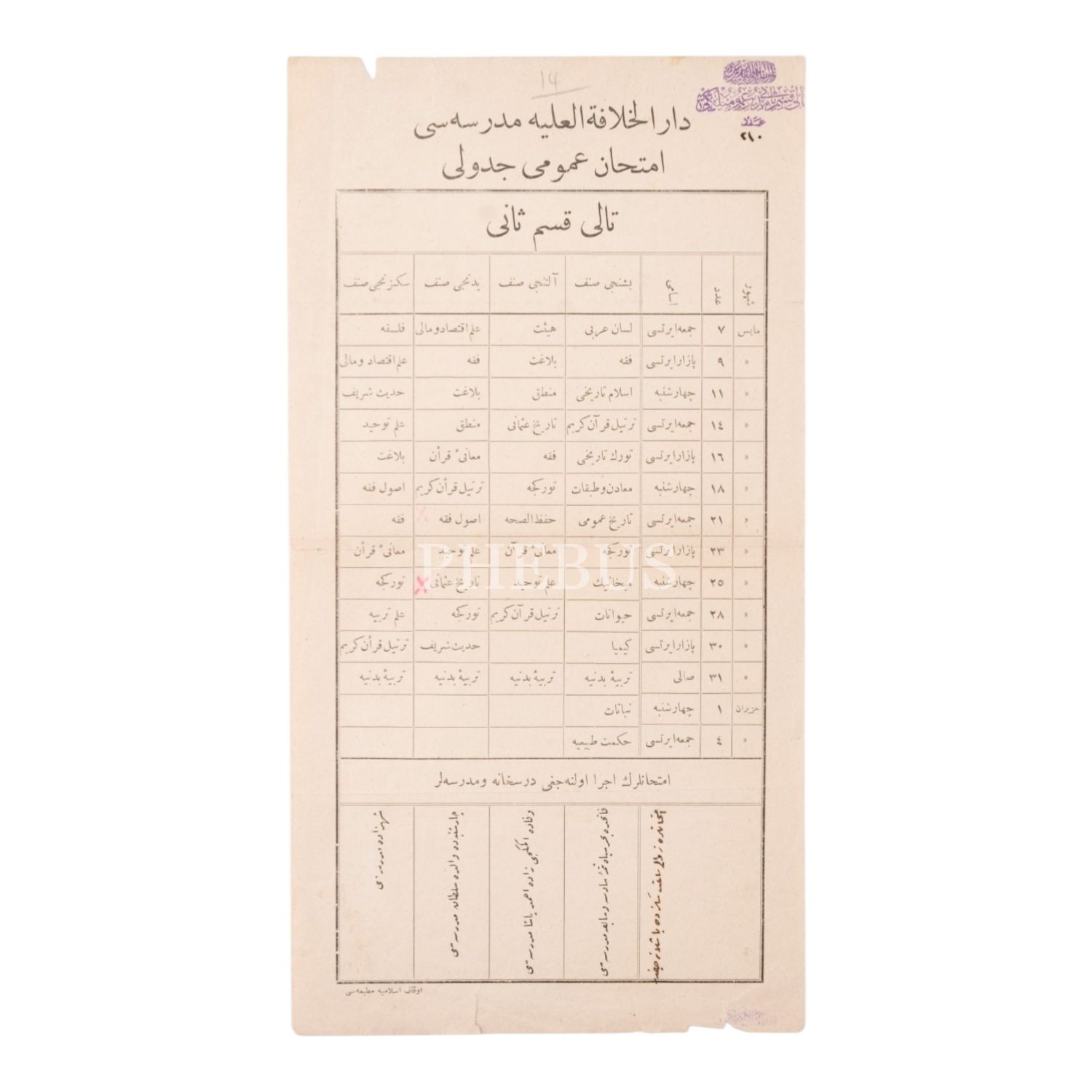 Darü´l-Hilafeti´l-Aliyye Medresesi´nin imtihan programı, 16x30 cm...