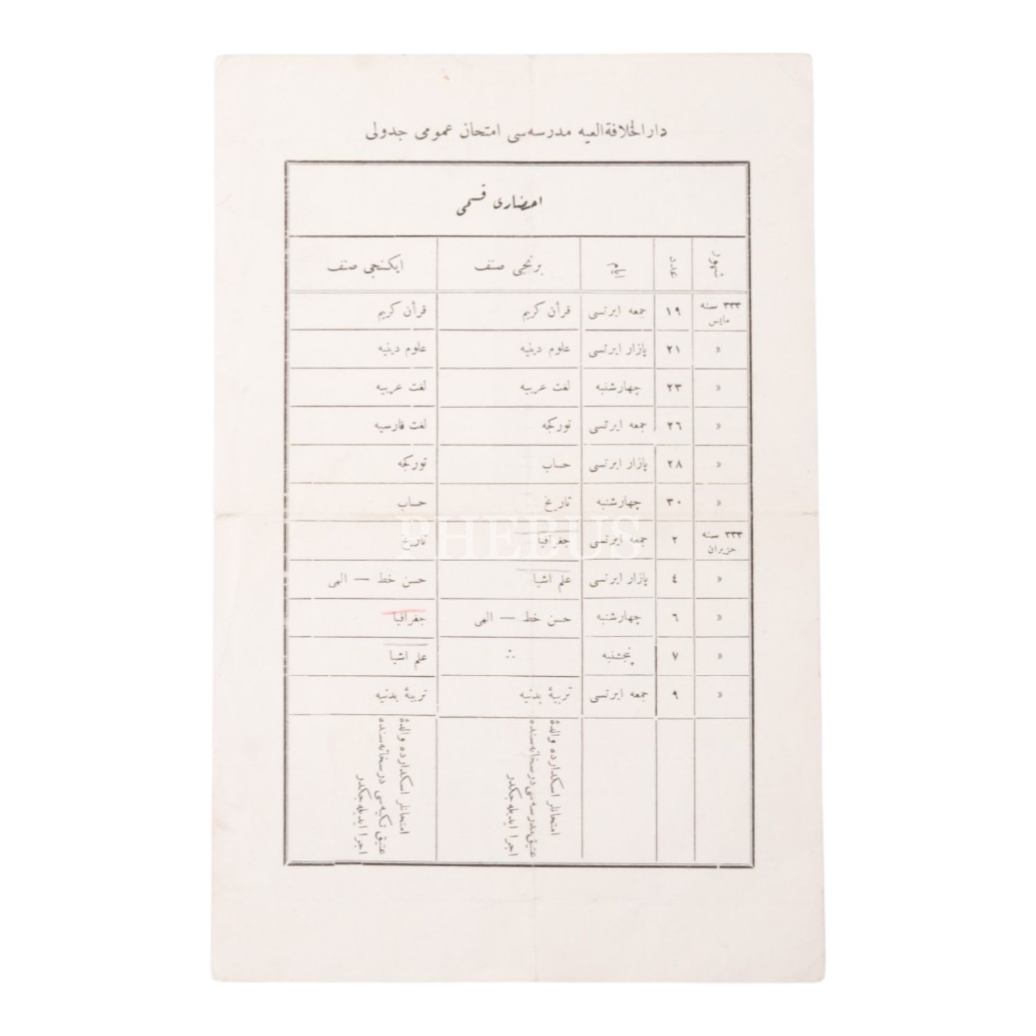 Darü´l-Hilafeti´l-Aliyye Medresesi´nin imtihan programı, 16x30 cm...