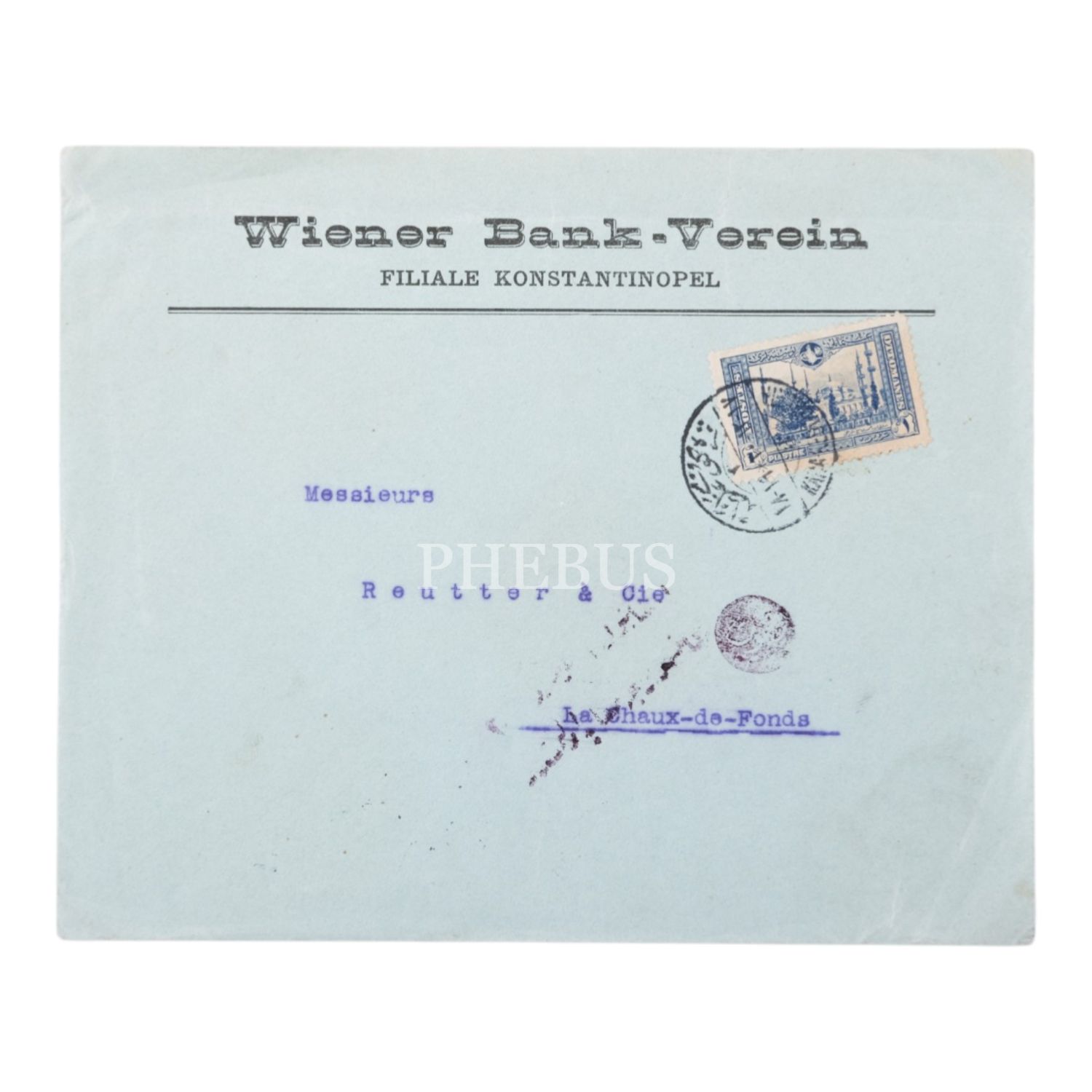 "Wiener Bank-Verein - Filiale Konstantinopel" antetli zarf (içi boş), postadan geçmiş, 17x14 cm...