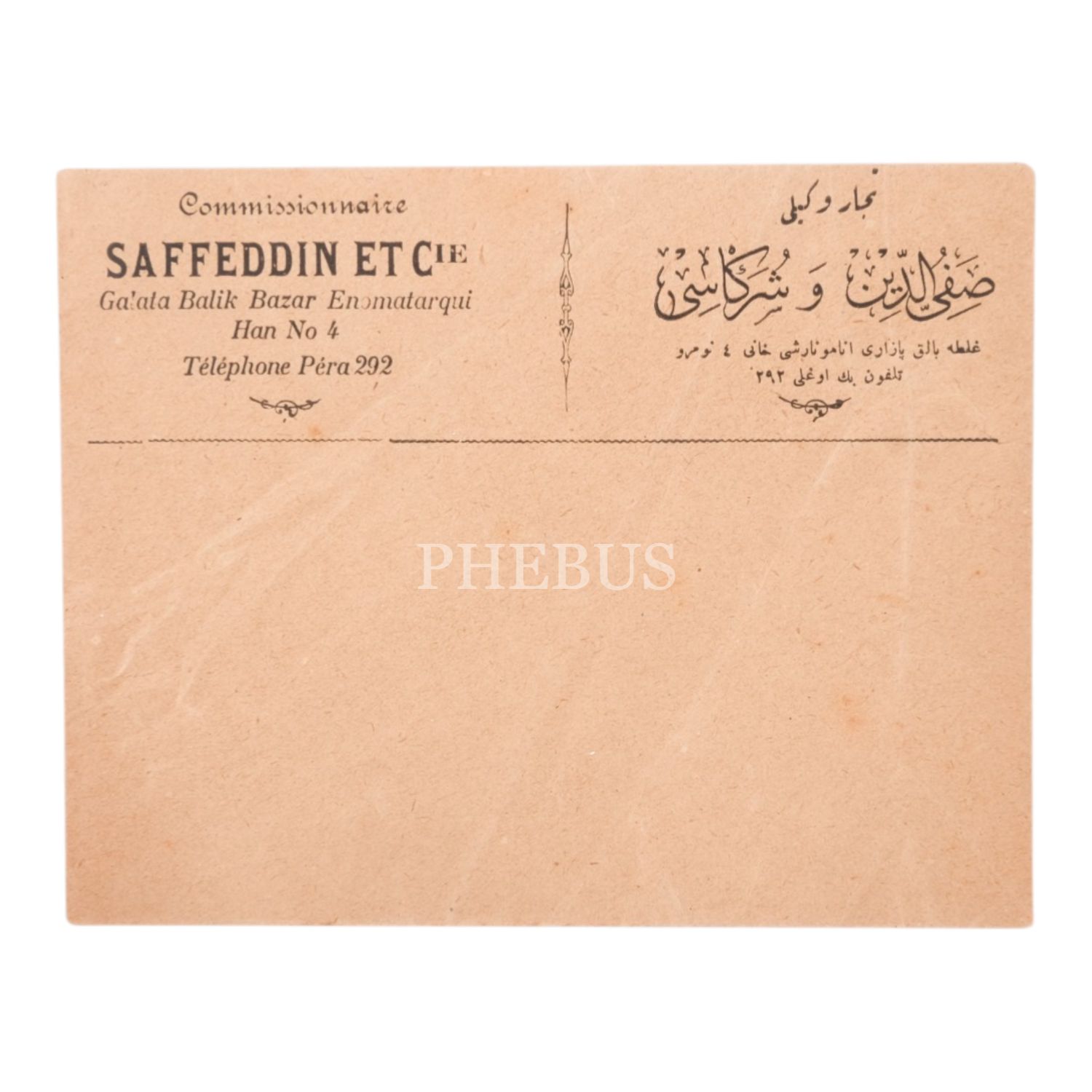 Osmanlıca ve Fransızca "Tüccarvekili Saffeddin ve Şürekası - Galata Balıkpazarı Anamonarşi Hanı" antetli mektup zarfı, 16x12 cm...