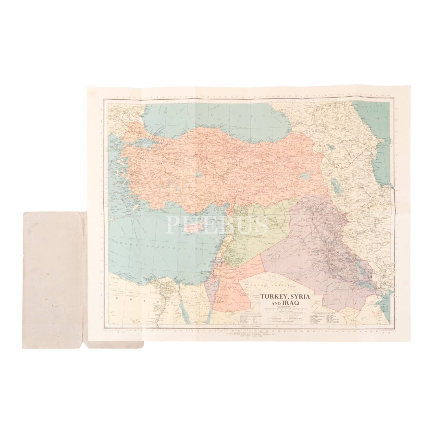 Türkiye, Suriye ve Irak haritası, "Turkey and Syria" Philip-Stanford Authentic Reference Maps, George Philip and Son Ltd - Edward Stanford Ltd, London, (açık halde) 70x55 cm...