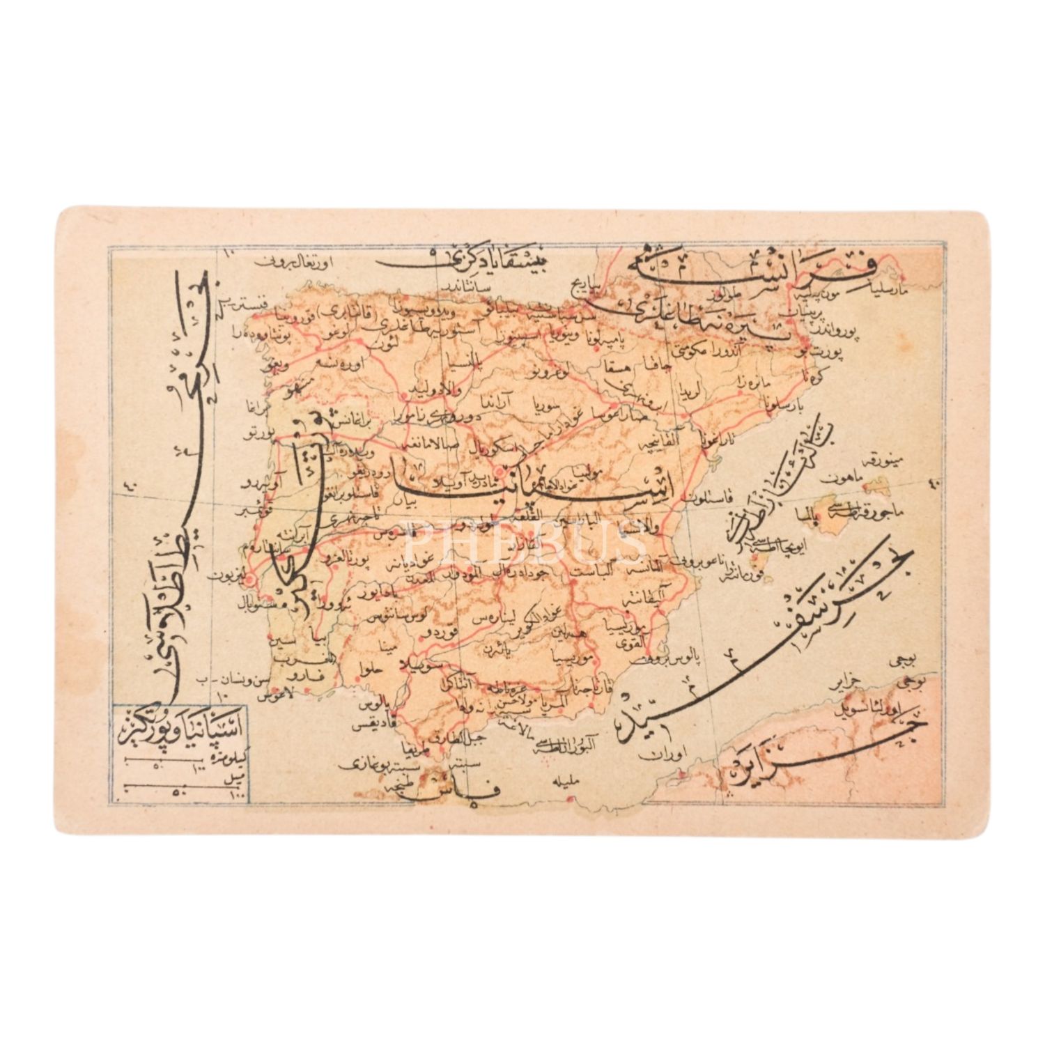 "Umumi Cep Atlası" serisinden, "İspanya ve Portekiz" başlıklı harita görselli kartpostal, 14x9 cm...