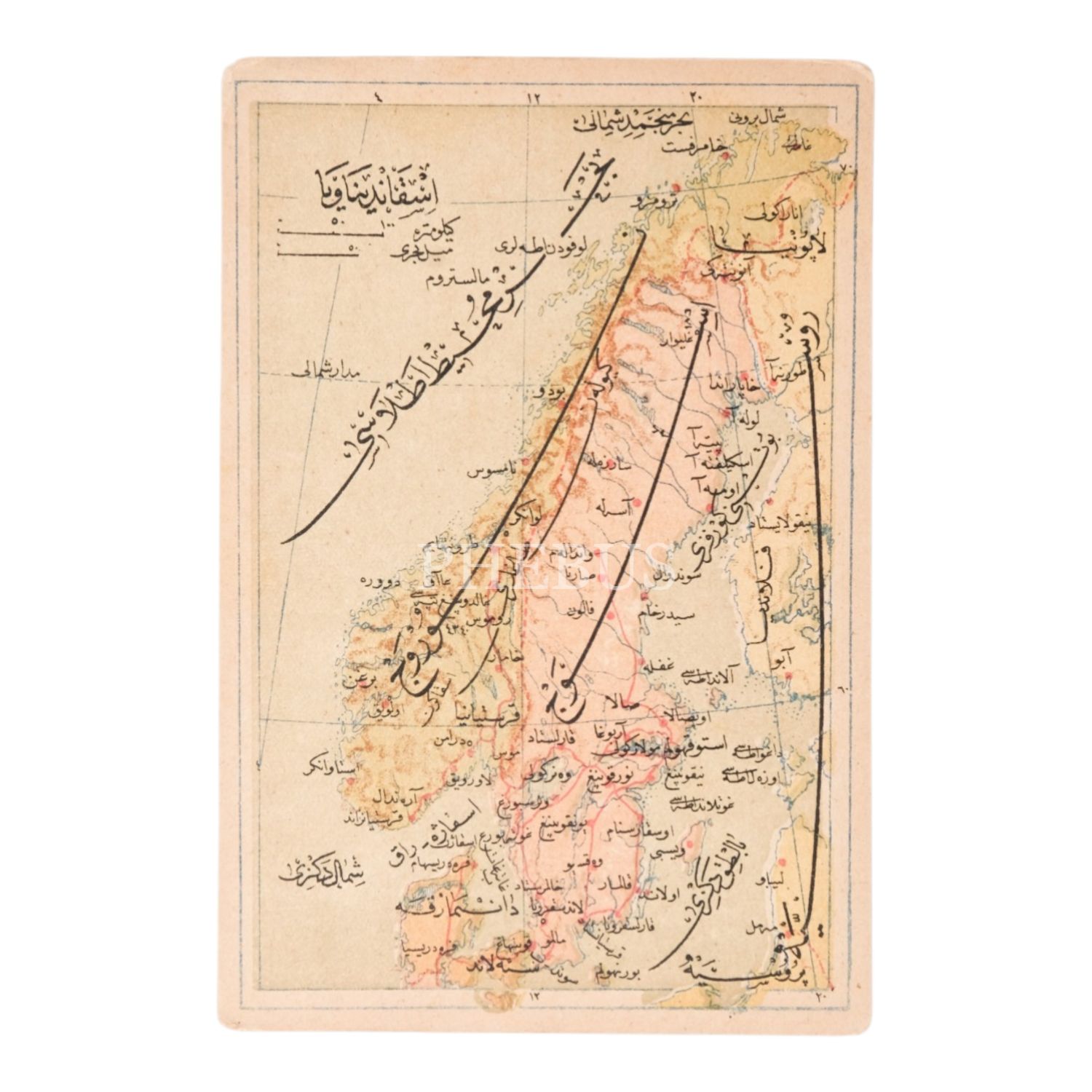 "Umumi Cep Atlası" serisinden, "İskandinavya" başlıklı harita görselli kartpostal, 14x9 cm...