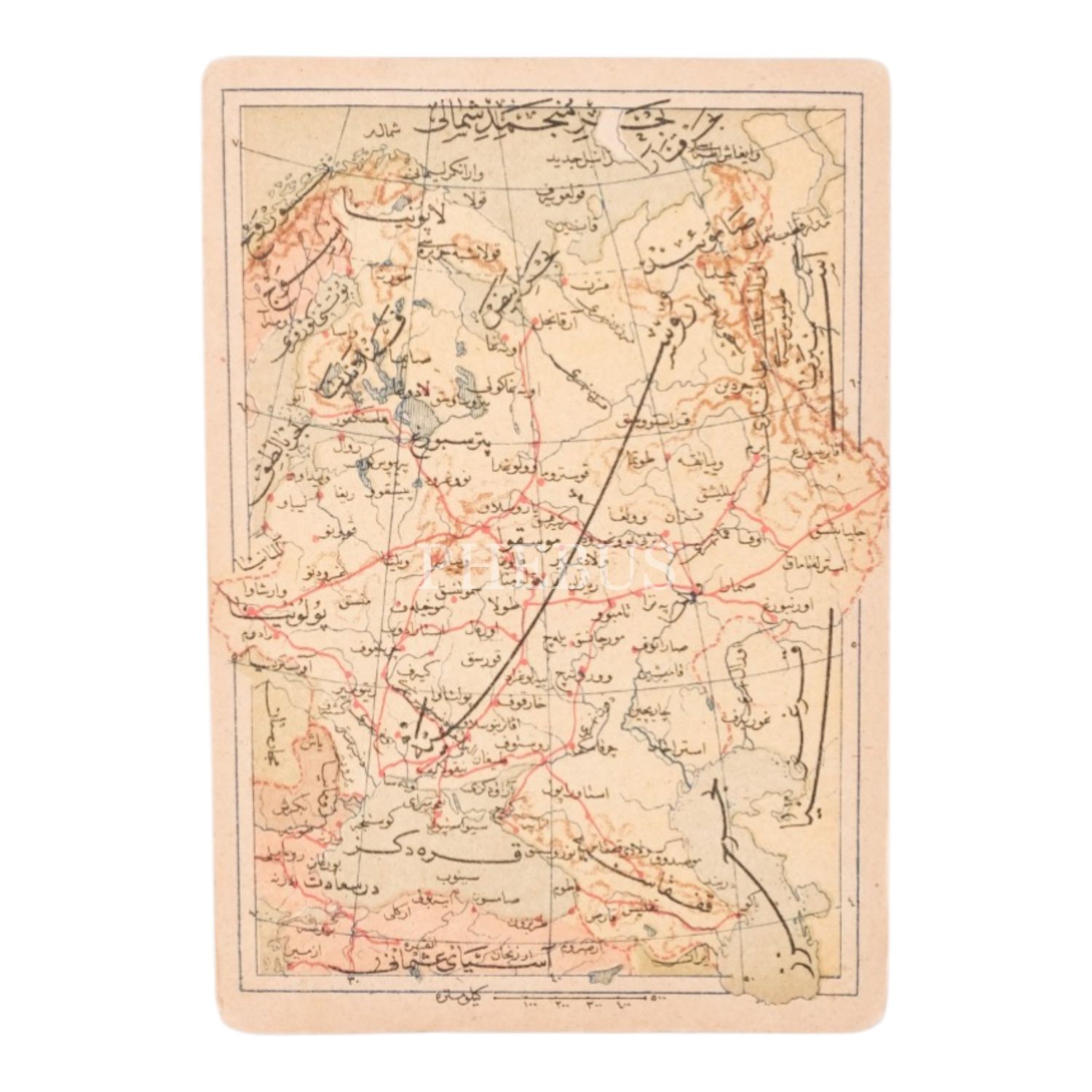 "Umumi Cep Atlası" serisinden, "Rusya" başlıklı harita görselli kartpostal, 14x9 cm...