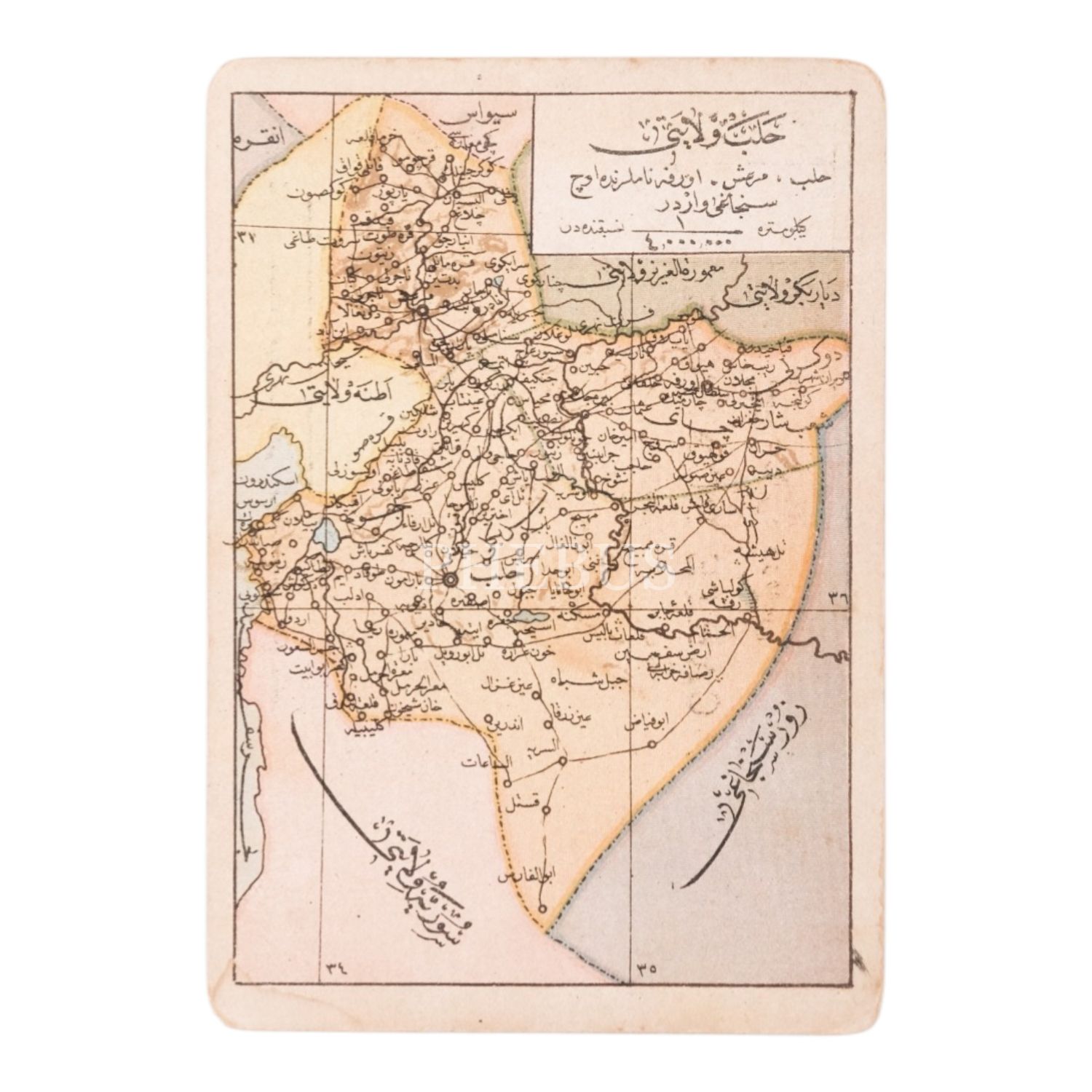 "Umumi Cep Atlası" serisinden, "Halep Vilayeti" başlıklı harita görselli kartpostal, 14x9 cm...