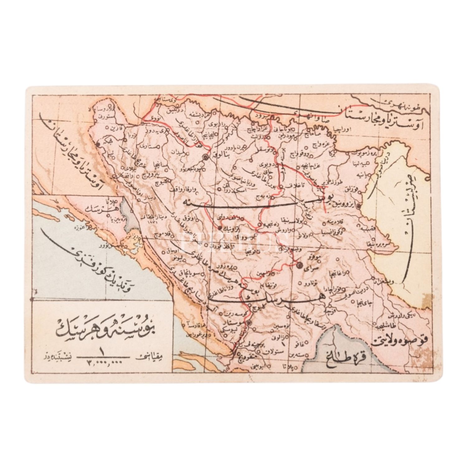 "Umumi Cep Atlası" serisinden, "Bosna ve Hersek" başlıklı harita görselli kartpostal, 14x9 cm...