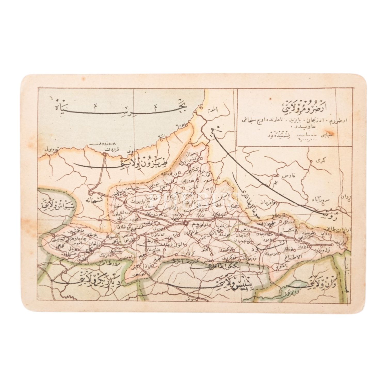 "Umumi Cep Atlası" serisinden, "Erzurum Vilayeti" başlıklı harita görselli kartpostal, 14x9 cm...