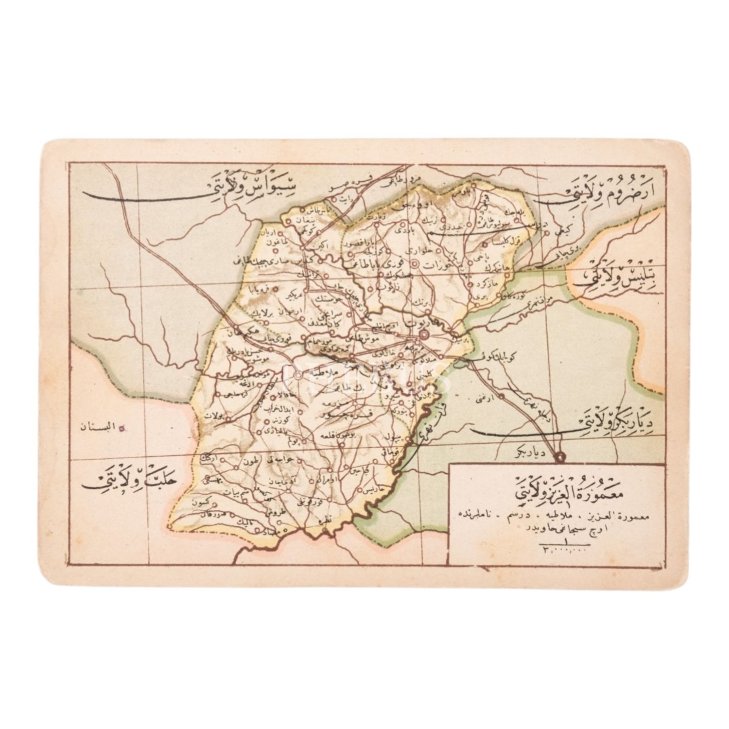 "Umumi Cep Atlası" serisinden, "Mamuretülaziz Vilayeti" başlıklı harita görselli kartpostal, 14x9 cm...