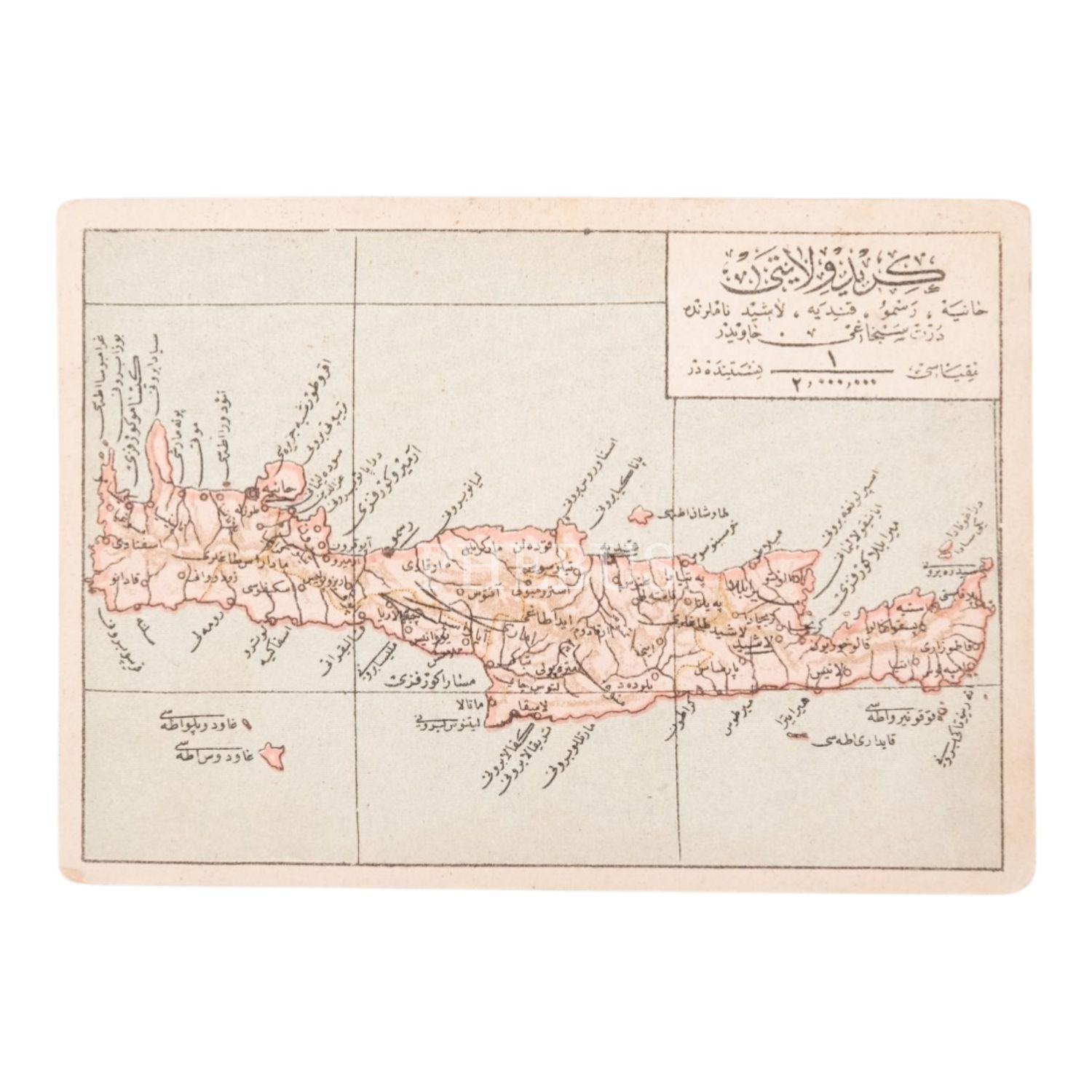 "Umumi Cep Atlası" serisinden, "Girit Vilayeti" başlıklı harita görselli kartpostal, 14x9 cm...