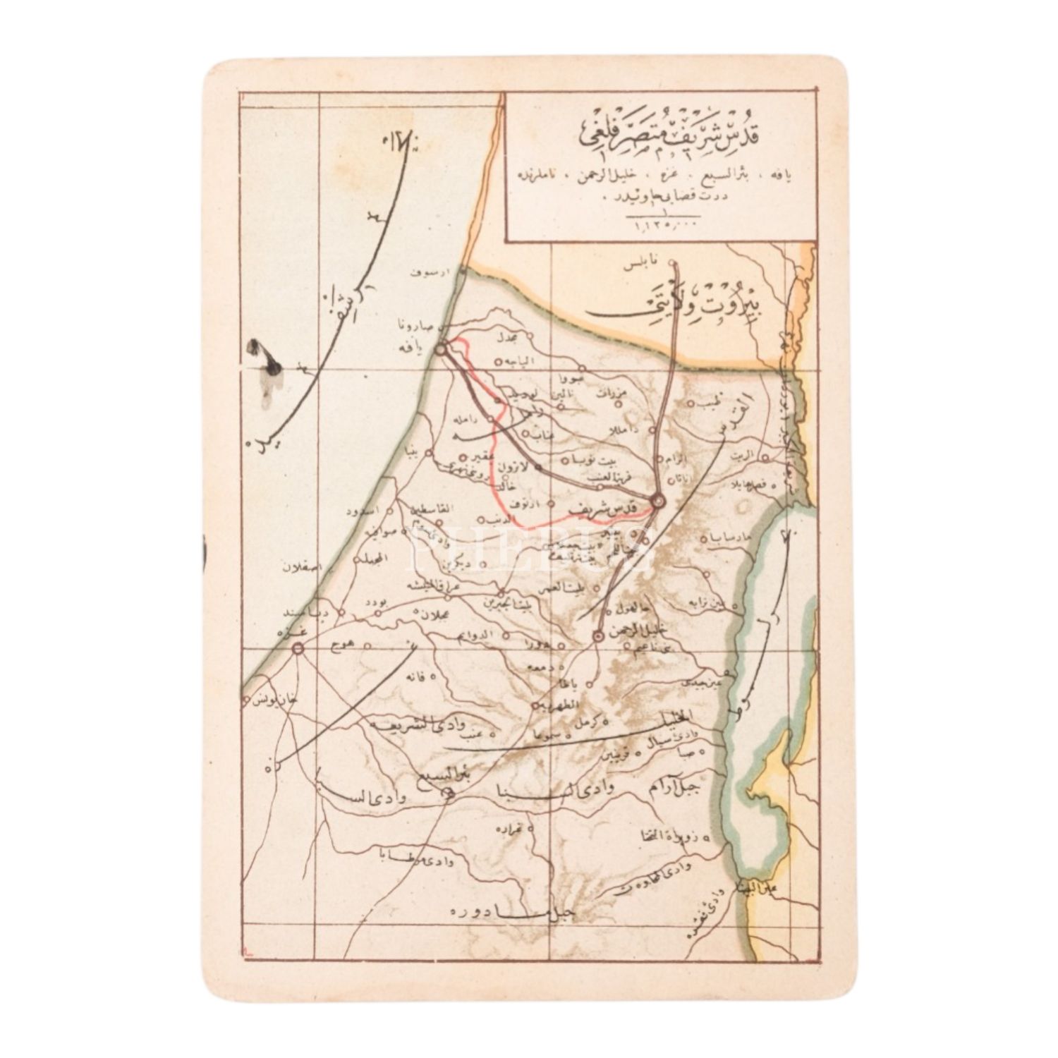 "Umumi Cep Atlası" serisinden, "Kudüs-ü Şerif Mutasarrıflığı" başlıklı harita görselli kartpostal, 14x9 cm...