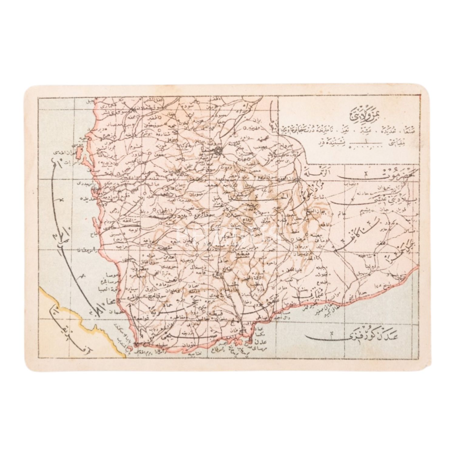 "Umumi Cep Atlası" serisinden, "Yemen Vilayeti" başlıklı harita görselli kartpostal, 14x9 cm...