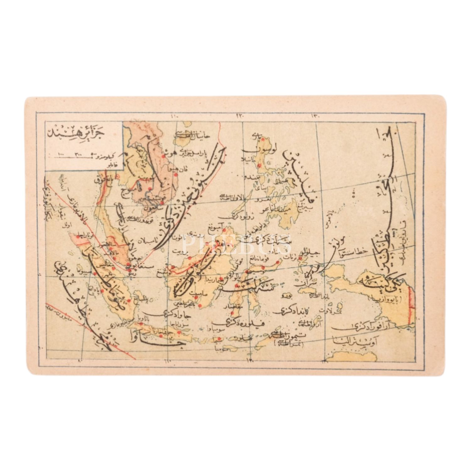 "Umumi Cep Atlası" serisinden, "Cezayir-i Hind" başlıklı harita görselli kartpostal, 14x9 cm...