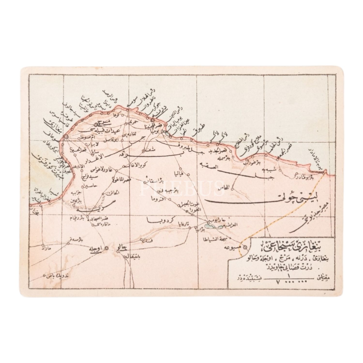 "Umumi Cep Atlası" serisinden, "Bingazi Sancağı" başlıklı harita görselli kartpostal, 14x9 cm...