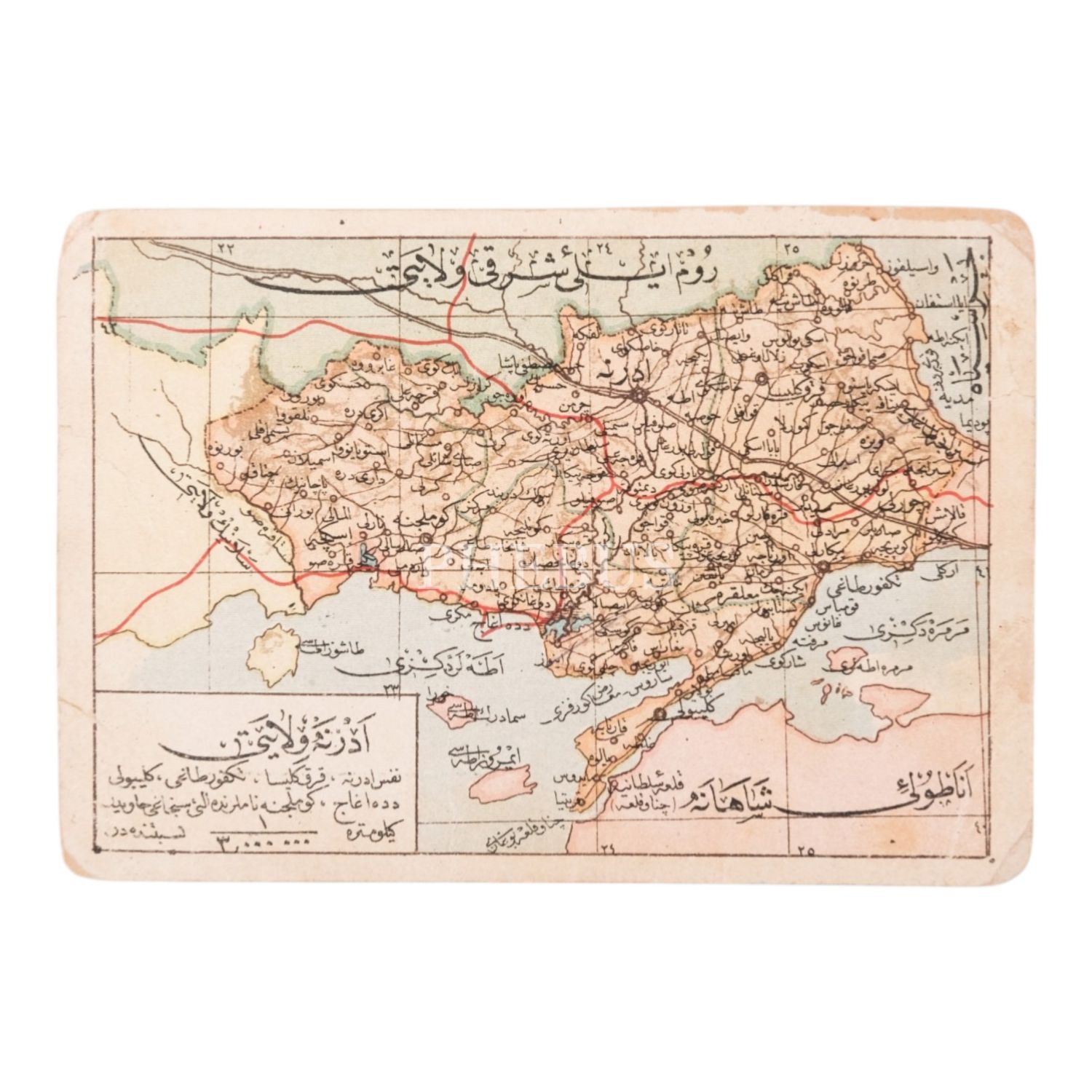 "Umumi Cep Atlası" serisinden, "Edirne Vilayeti" başlıklı harita görselli kartpostal, 14x9 cm...