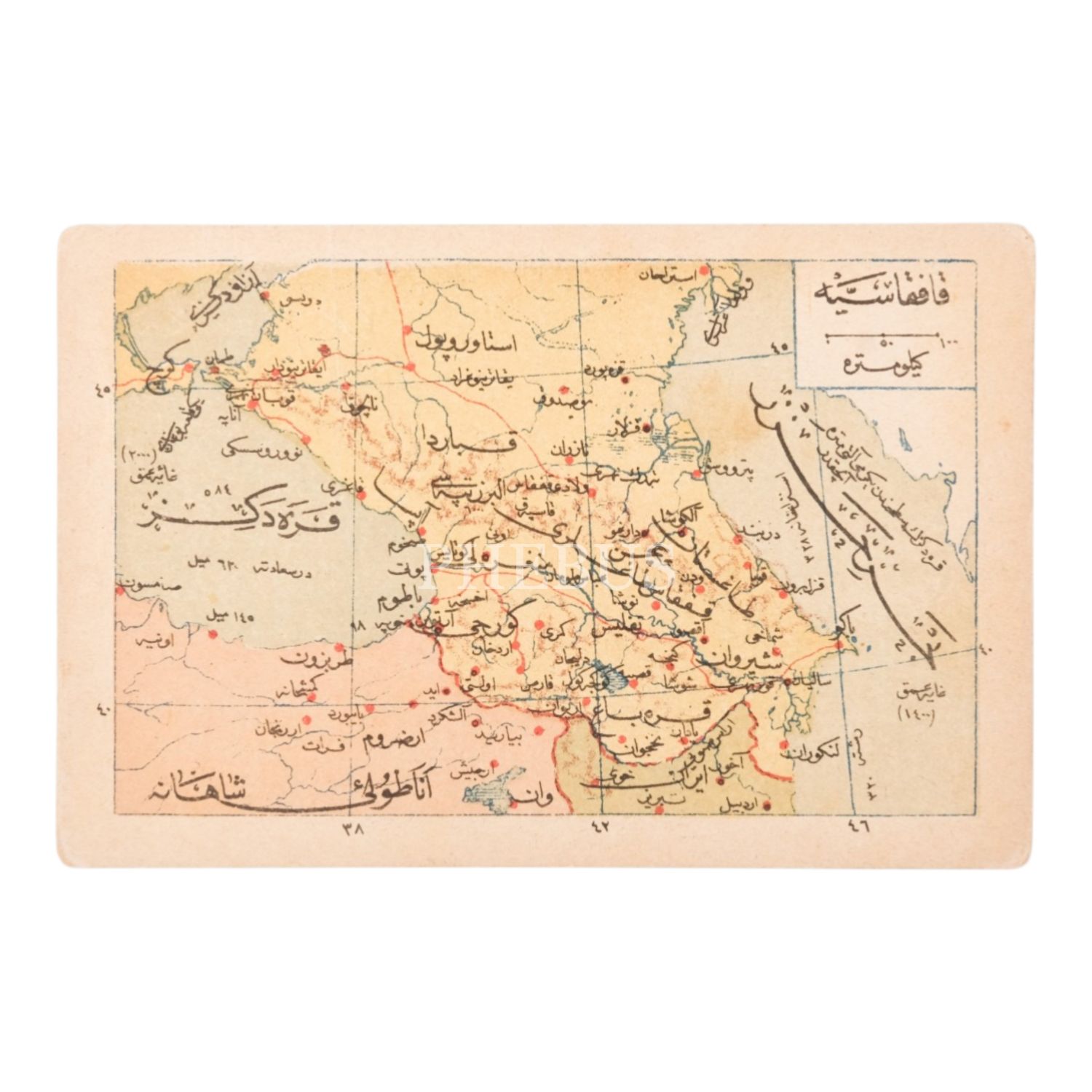 "Umumi Cep Atlası" serisinden, "Kafkasya" başlıklı harita görselli kartpostal, 14x9 cm...