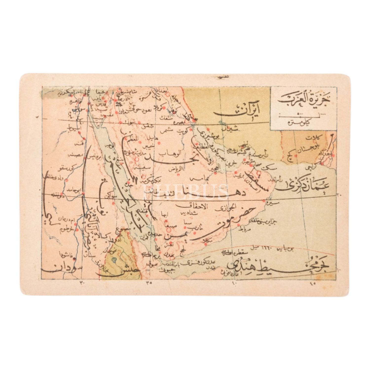 "Umumi Cep Atlası" serisinden, "Ceziretü´l-Arab" başlıklı harita görselli kartpostal, 14x9 cm...
