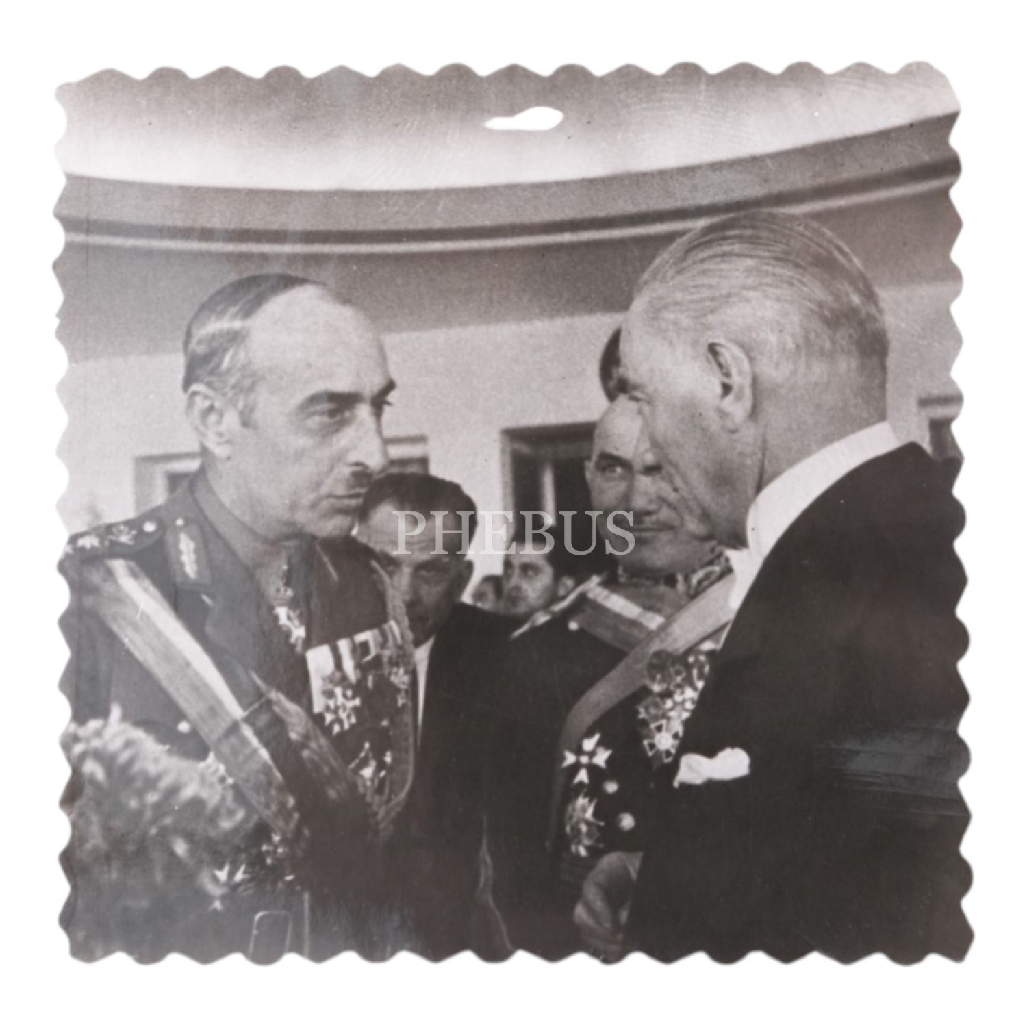 Mustafa Kemal Atatürk, Cumhuriyet Balosu´nda, ülkelerini temsilen Türkiye´ye gelen generallerle birlikte sohbet halinde, 29 Ekim 1937, 11x11 cm...