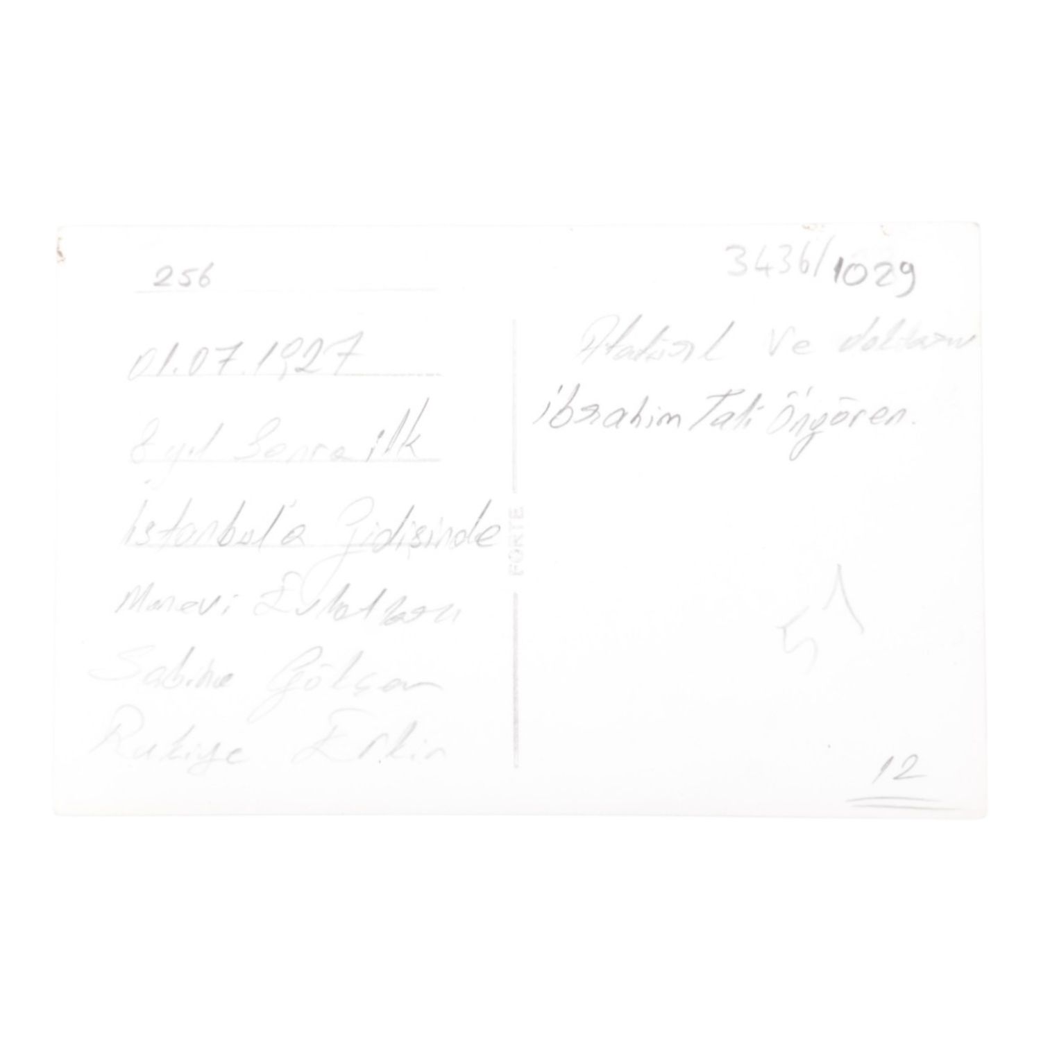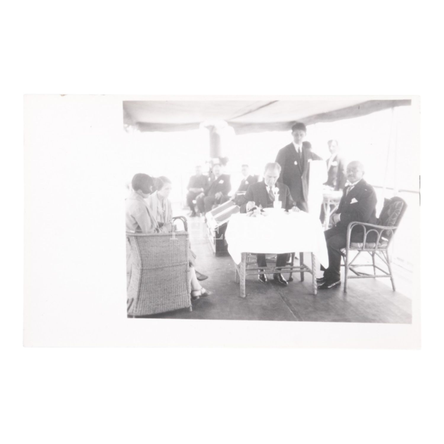 Cumhuriyet döneminde İstanbul’a ilk ziyaretini ancak 1927 yılında gerçekleştirebilen Mustafa Kemal Atatürk, İstanbul´a giriş yaptığı Ertuğrul Yatı´nın güvertesinde, doktoru İbrahim Tali Öngören ve manevi kızları Sabiha Gökçen ve Rukiye Erkin ile birlikte sofrada, 1 Temmuz 1927, 14x9 cm...
