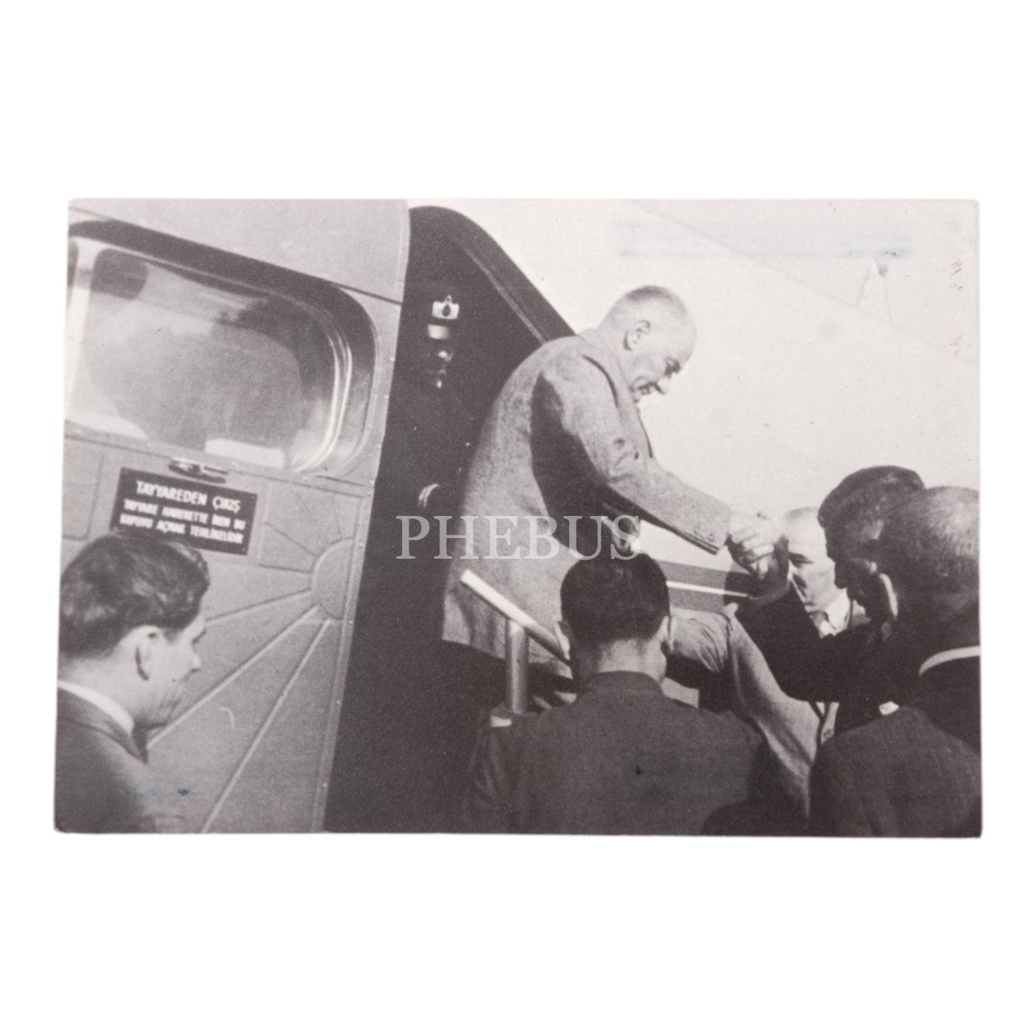 Mustafa Kemal Atatürk, Yeşilköy Havaalanı´nda incelediği bir uçaktan çıkış yapıyor, 29 Termmuz 1937, 15x10 cm...