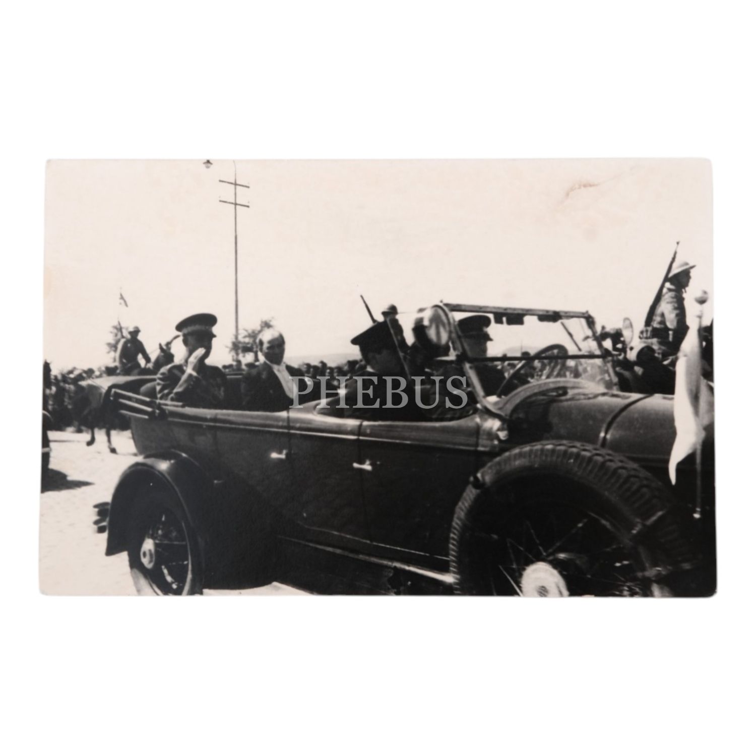 Mustafa Kemal Atatürk, Türkiye´yi ziyaret eden İran Şahı Rıza Pehlevi ile birlikte otomobilde, 17 Haziran 1934, Ankara Hipodrom, 14x9 cm...