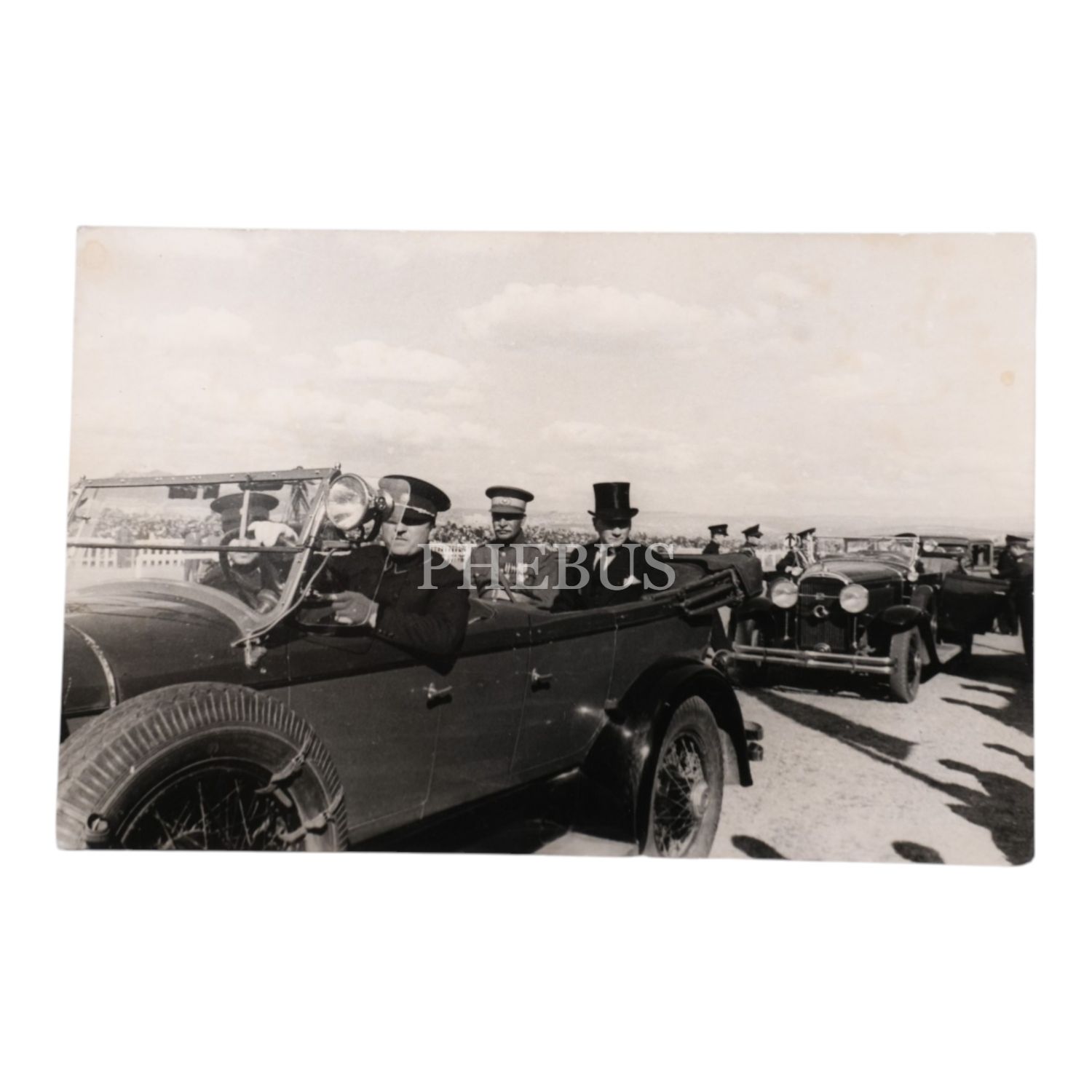 Mustafa Kemal Atatürk, Türkiye´yi ziyaret eden İran Şahı Rıza Pehlevi ile birlikte otomobilde, 17 Haziran 1934, Ankara Hipodrom, 14x9 cm...