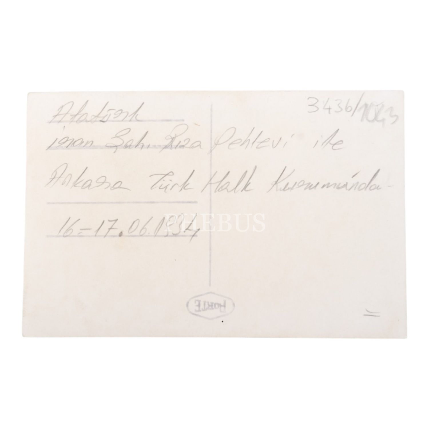 Mustafa Kemal Atatürk, Türkiye´yi ziyaret eden İran Şahı Rıza Pehlevi ile birlikte, Ankara Türk Ocağı´nda, 16-17 Haziran 1934, 9x14 cm...