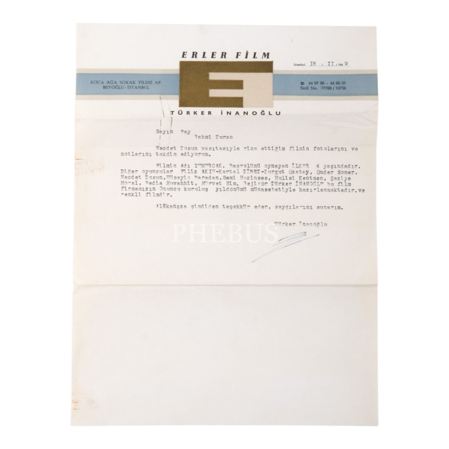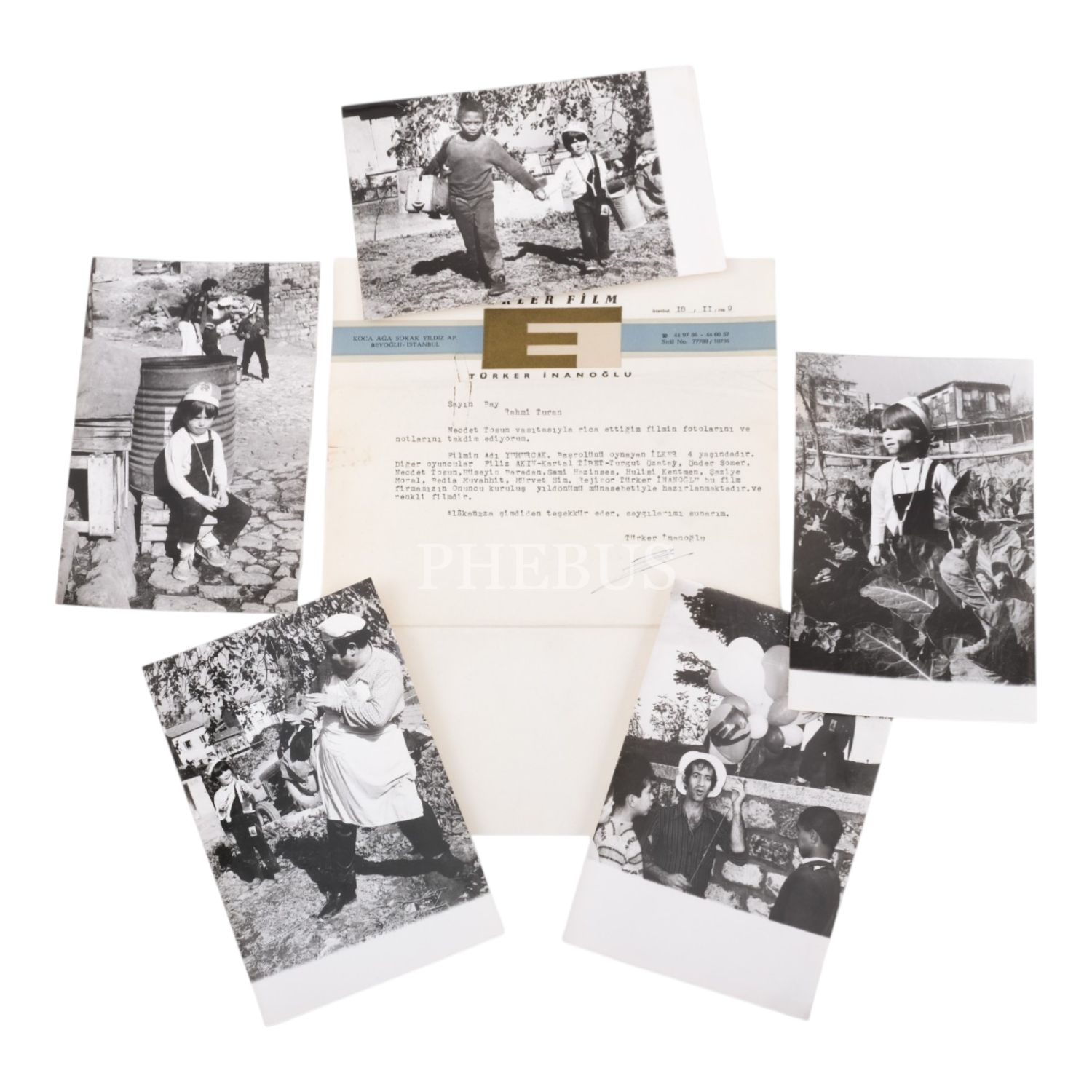 Türker İnanoğlu´ndan gazeteci Rahmi Tuıran´a gönderilmiş ıslak imzalı daktilo mektup ve Yumurcak filminden 5 adet fotoğraf (12x18 cm)...