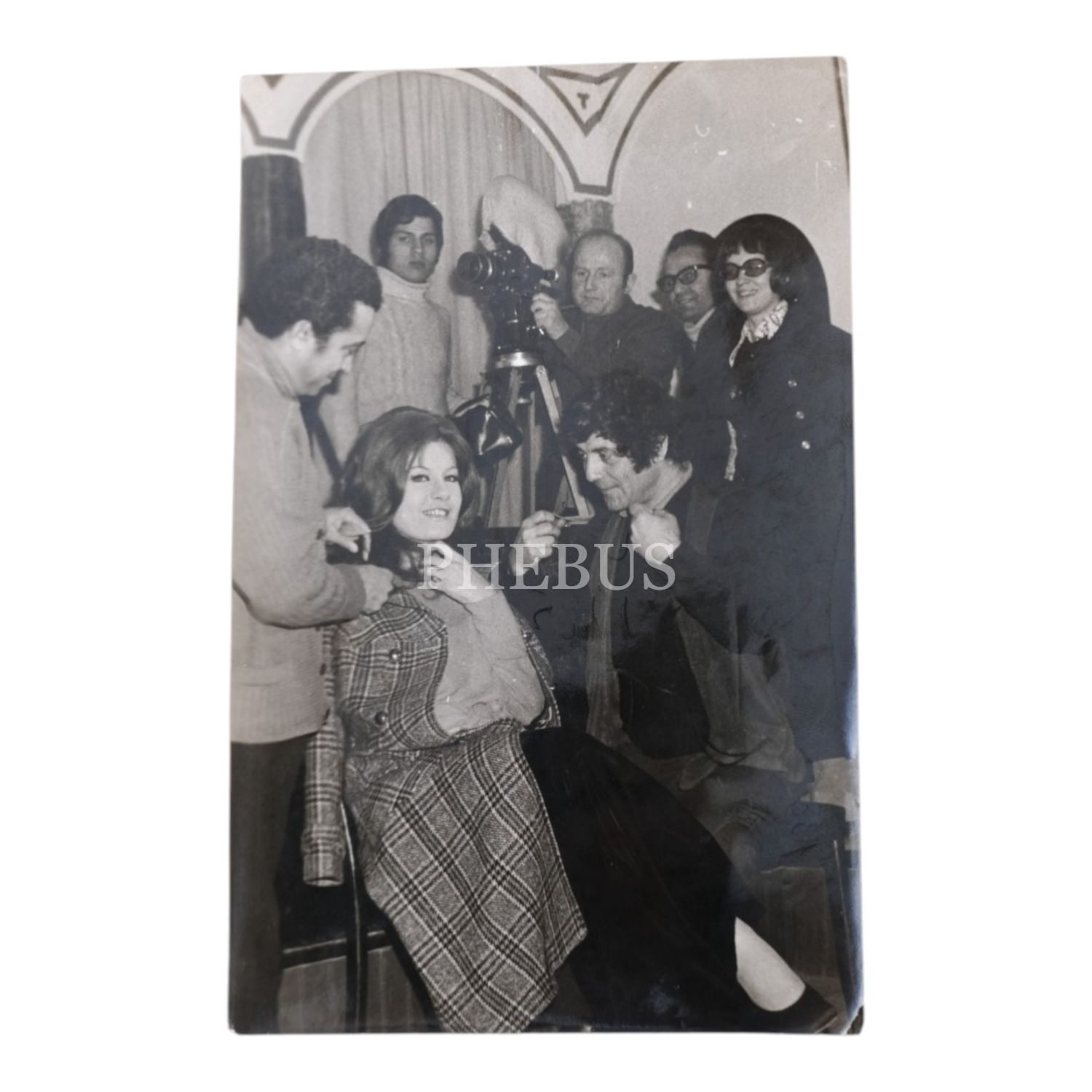 Emel Sayın, yönetmen Metin Erksan ile birlikte bir film çekiminde, 12x18 cm...