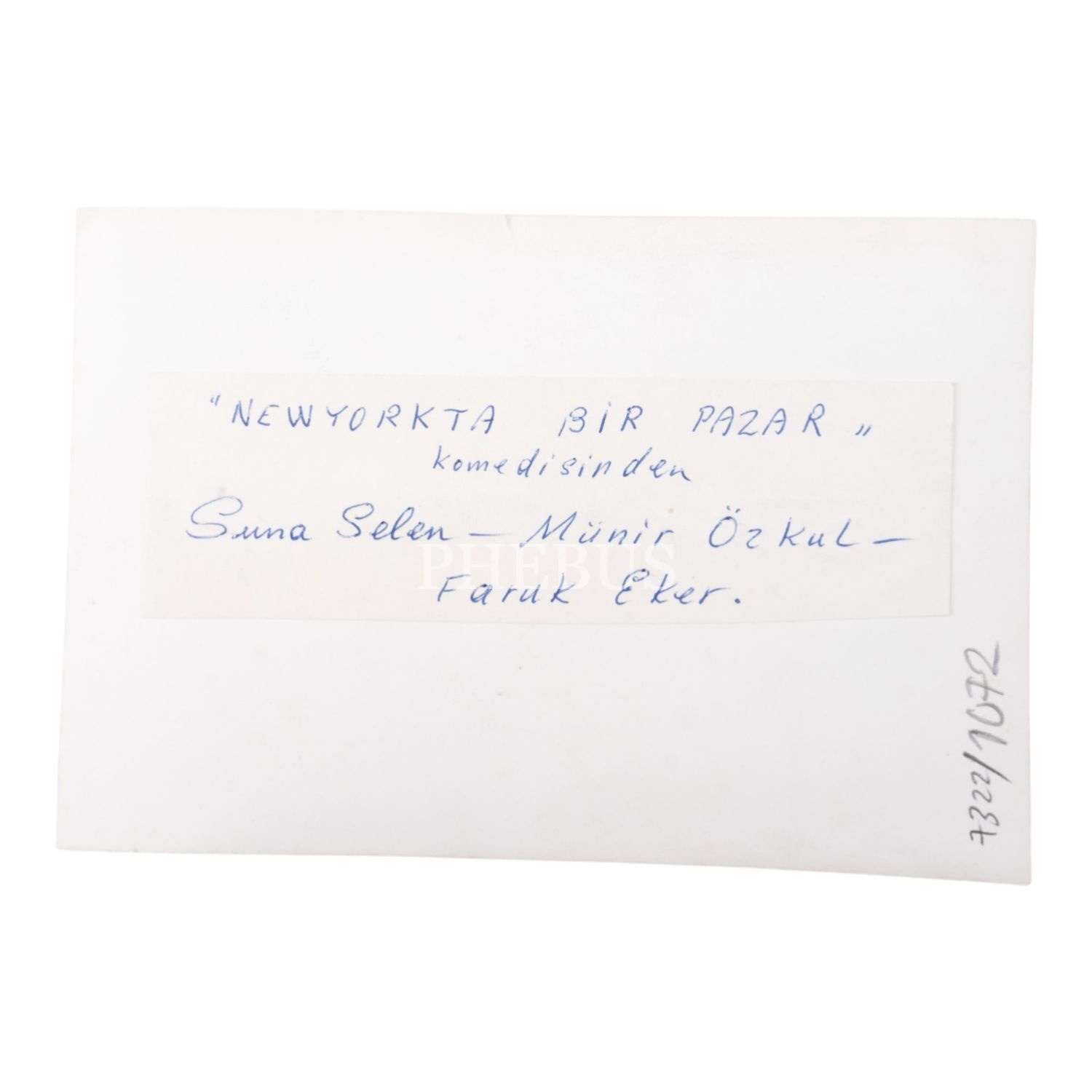 "New York´ta Bir Pazar" adlı oyundan, Münir Özkul, Suna Selen ve Faruk Eker´in bir arada görüldüğü bir fotoğraf, 12x18 cm...