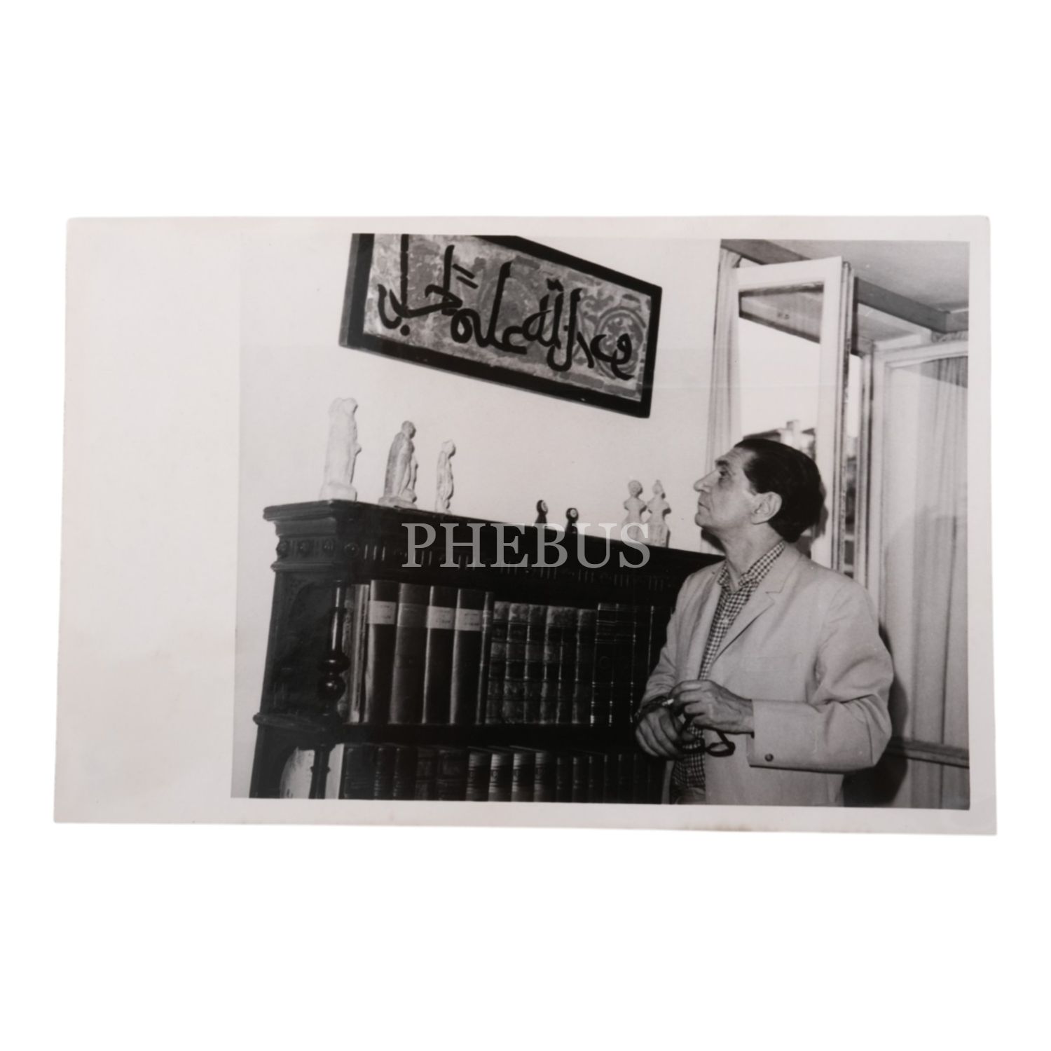 Abidin Dino´nun bir hat levhayı incelerken çekilmiş fotoğrafı, 18x12 cm...