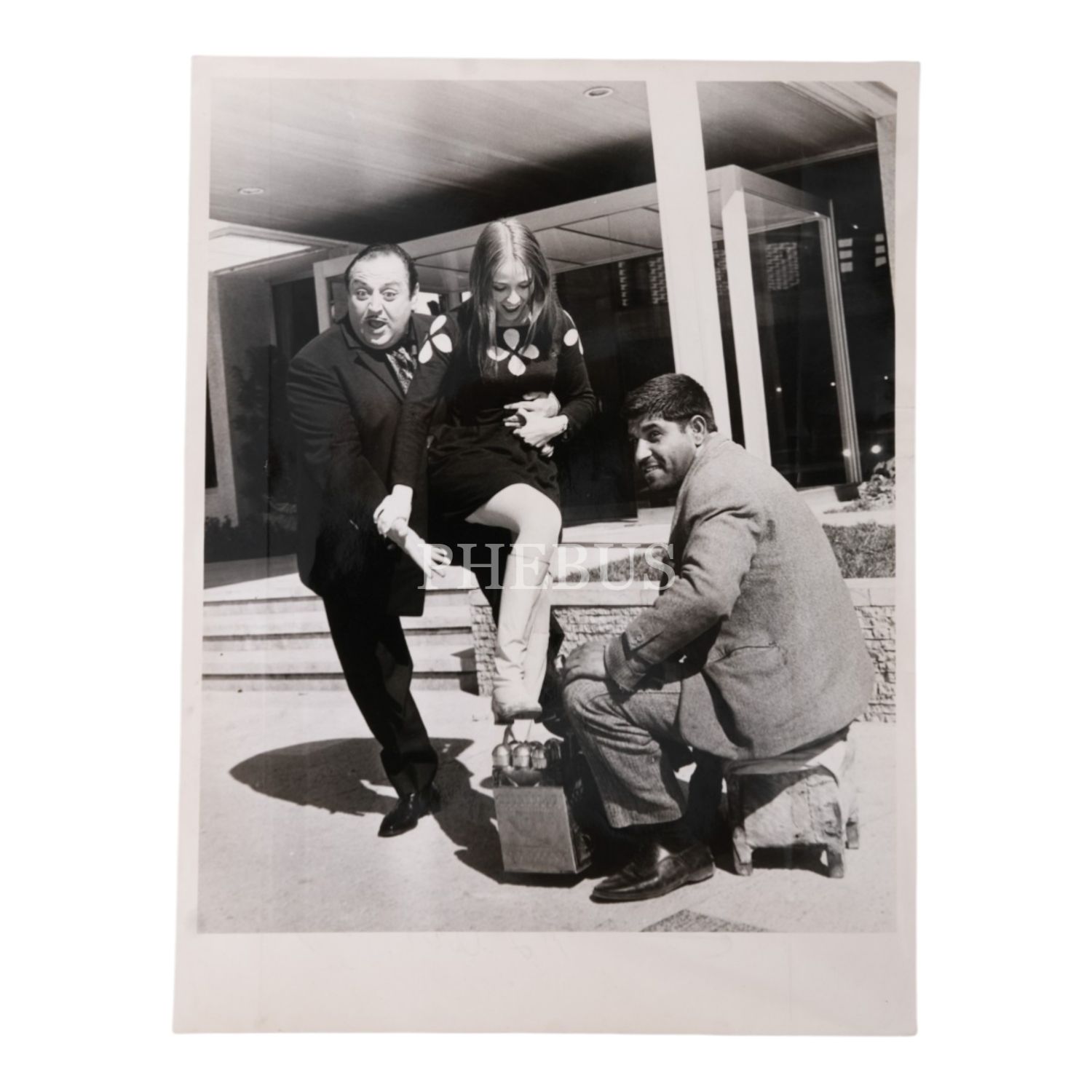 Dario Moreno ile arkadaşının, bir ayakkabı boyacısı ile aynı karede yer aldığı mizansen fotoğraf, 18x24 cm...