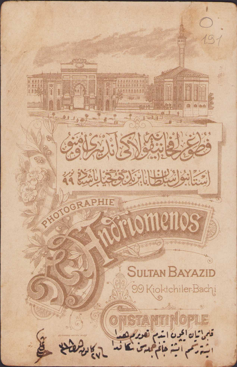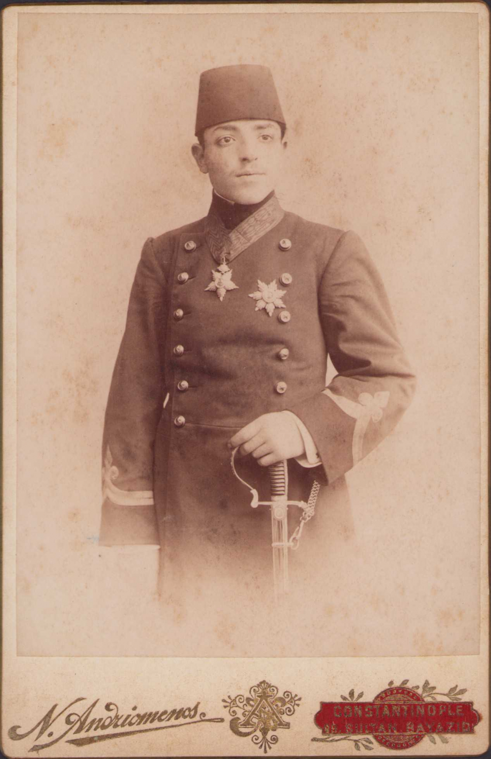 Osmanlı nişanlı bir subay, Foto Nicolas Andriomeno, kabin fotoğrafı, Constantinople