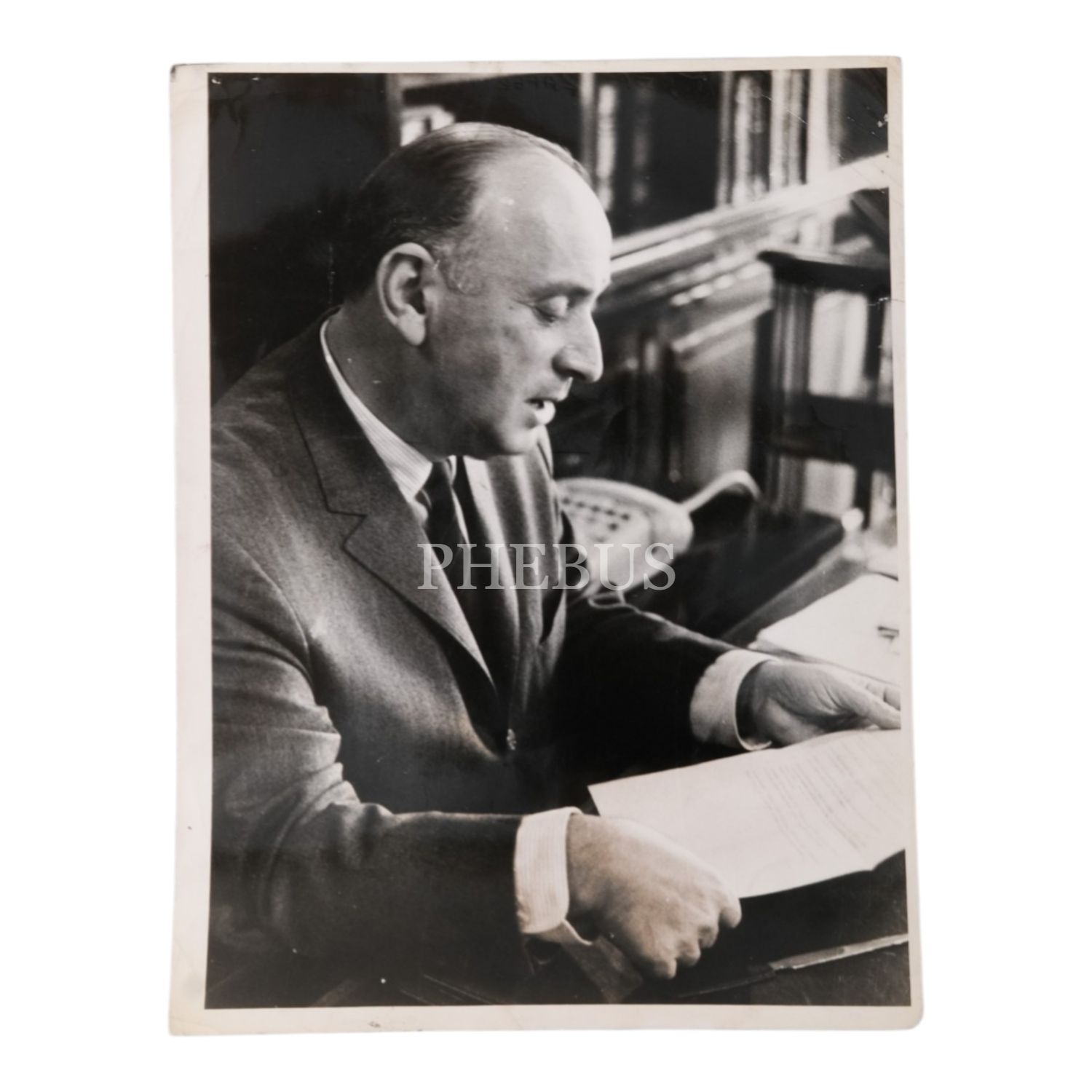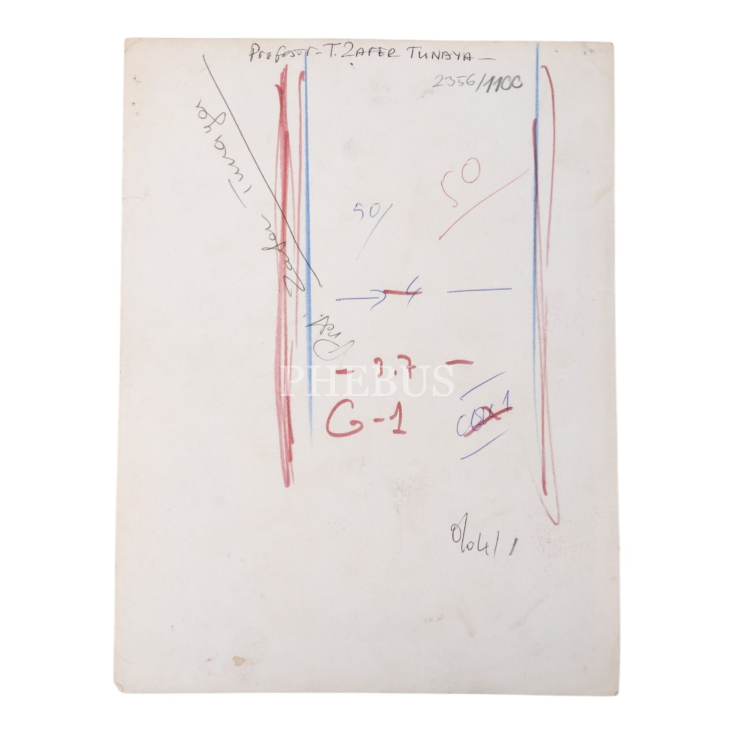 Tarık Zafer Tunaya´nın, çalışma masasında çekilmiş bir fotoğrafı, 18x24 cm...