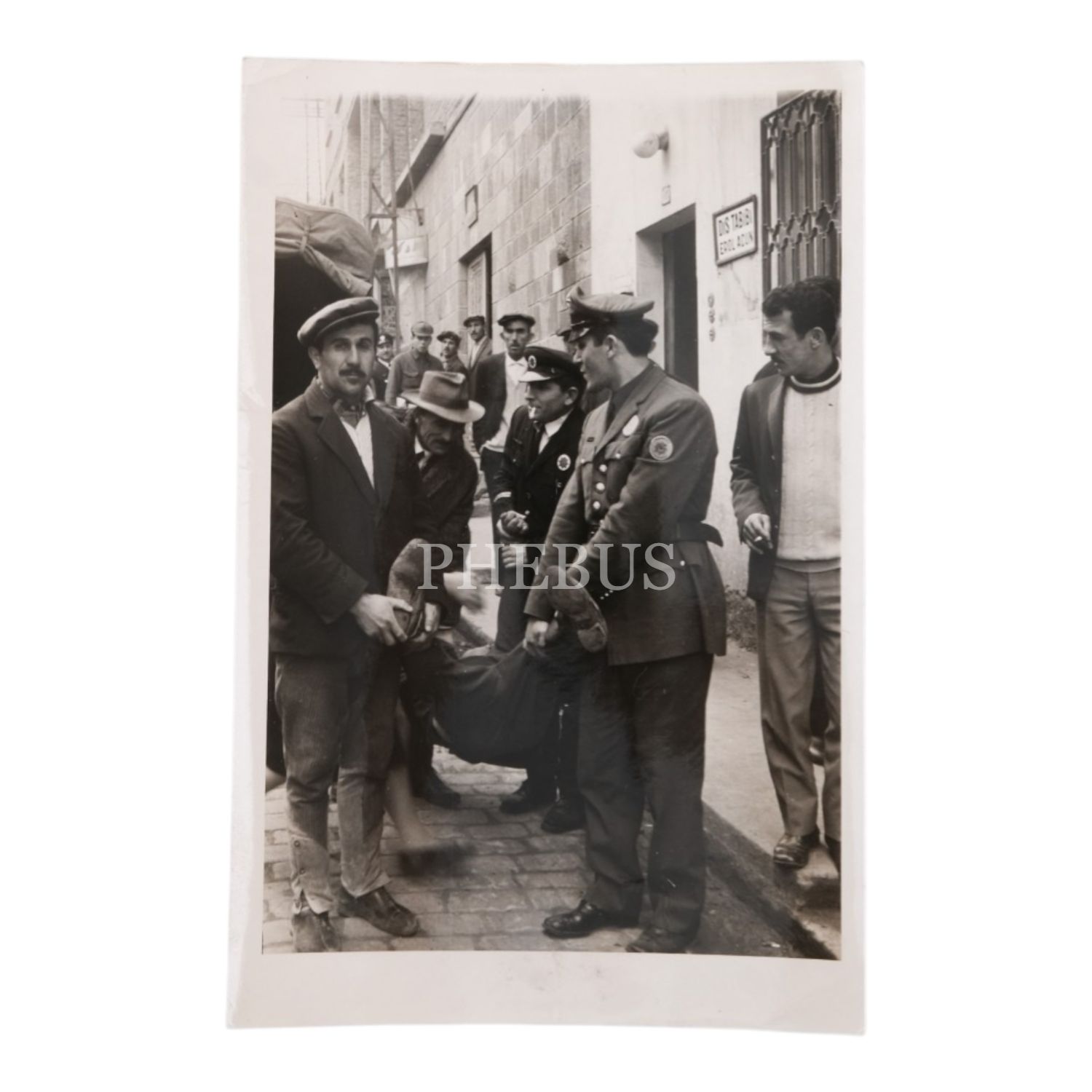 Mahkemenin hakkında tutuklama kararı vermesi üzerine bayılan 17 yaşındaki hırsızlık sanığının, yetkililer tarafından tedaviye götürülürken çekilmiş bir fotoğrafı, 1969, 12x18 cm...