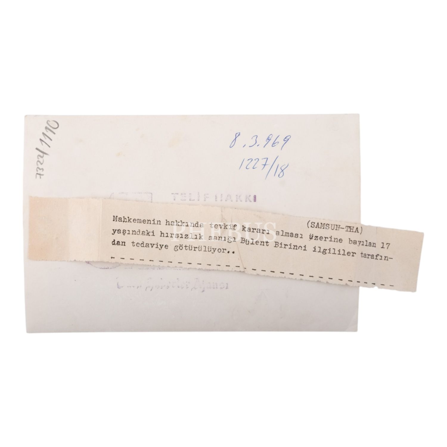 Arka yüzü "THA (Türk Haberler Ajansı)" damgalı ve açıklama bantlı.