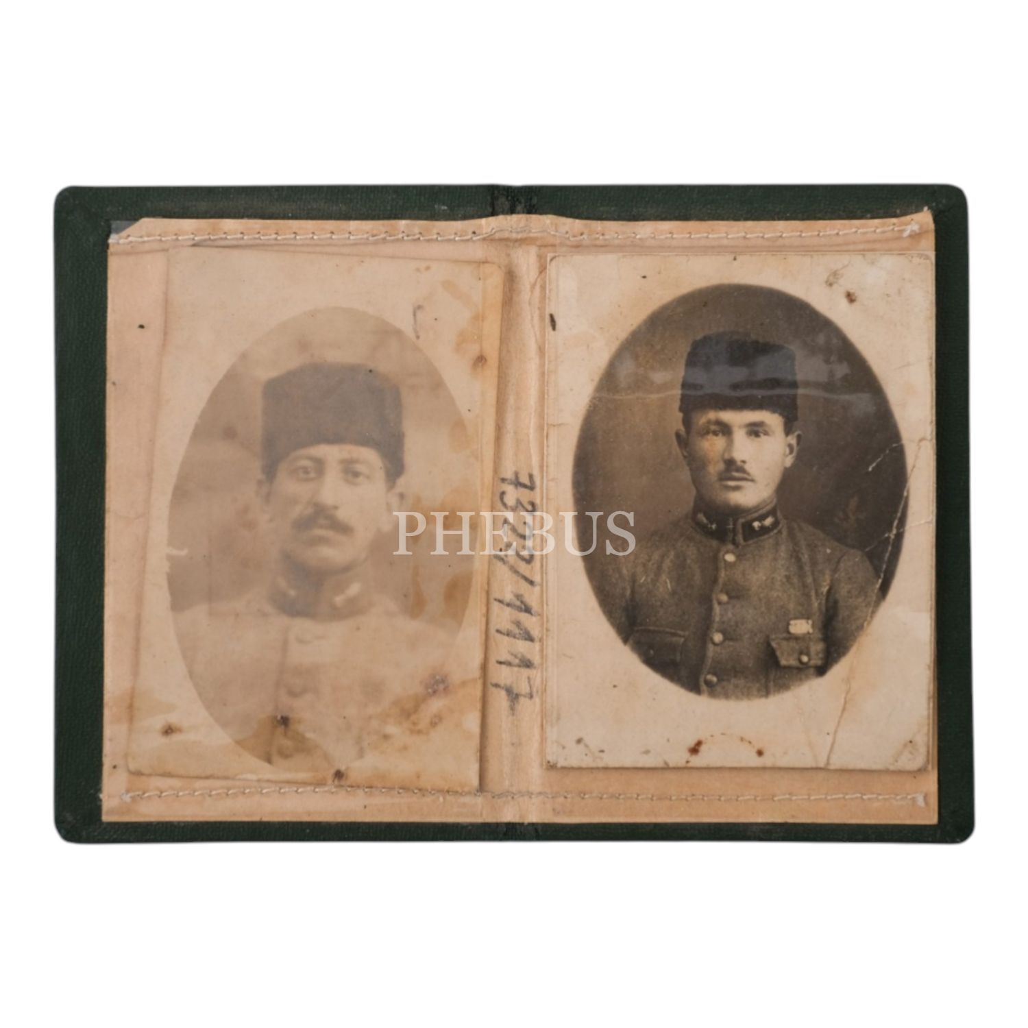 "Subay" başlıklı minik bir cüzdan içinde, iki adet kalpaklı subay fotoğrafı, (açık halde) 12x8,5 cm...