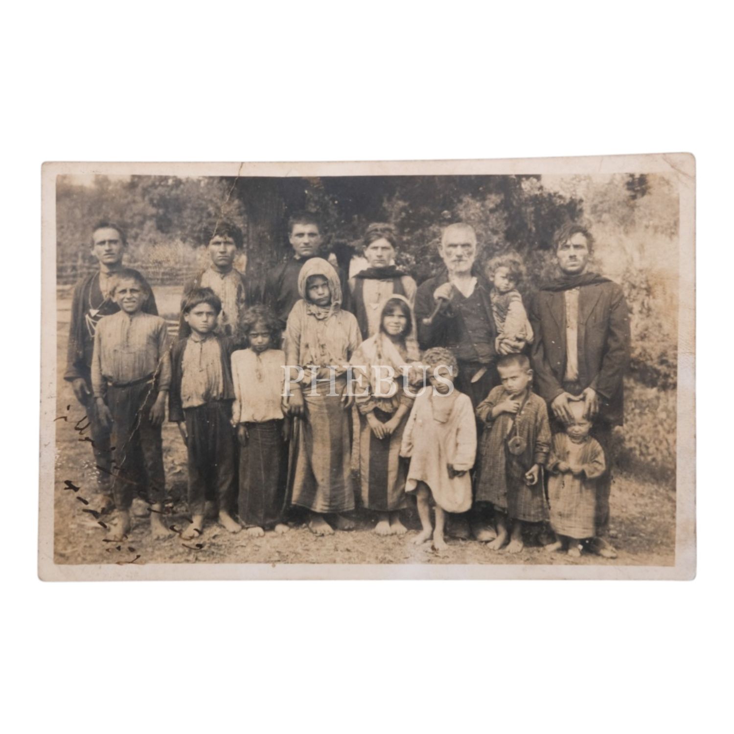 İki eşinden toplamda 26 çocuk dünyaya getiren Feyzi oğlu Harun´un 14 çocuğu ile çektirdiği fotoğrafı, 14x9 cm...