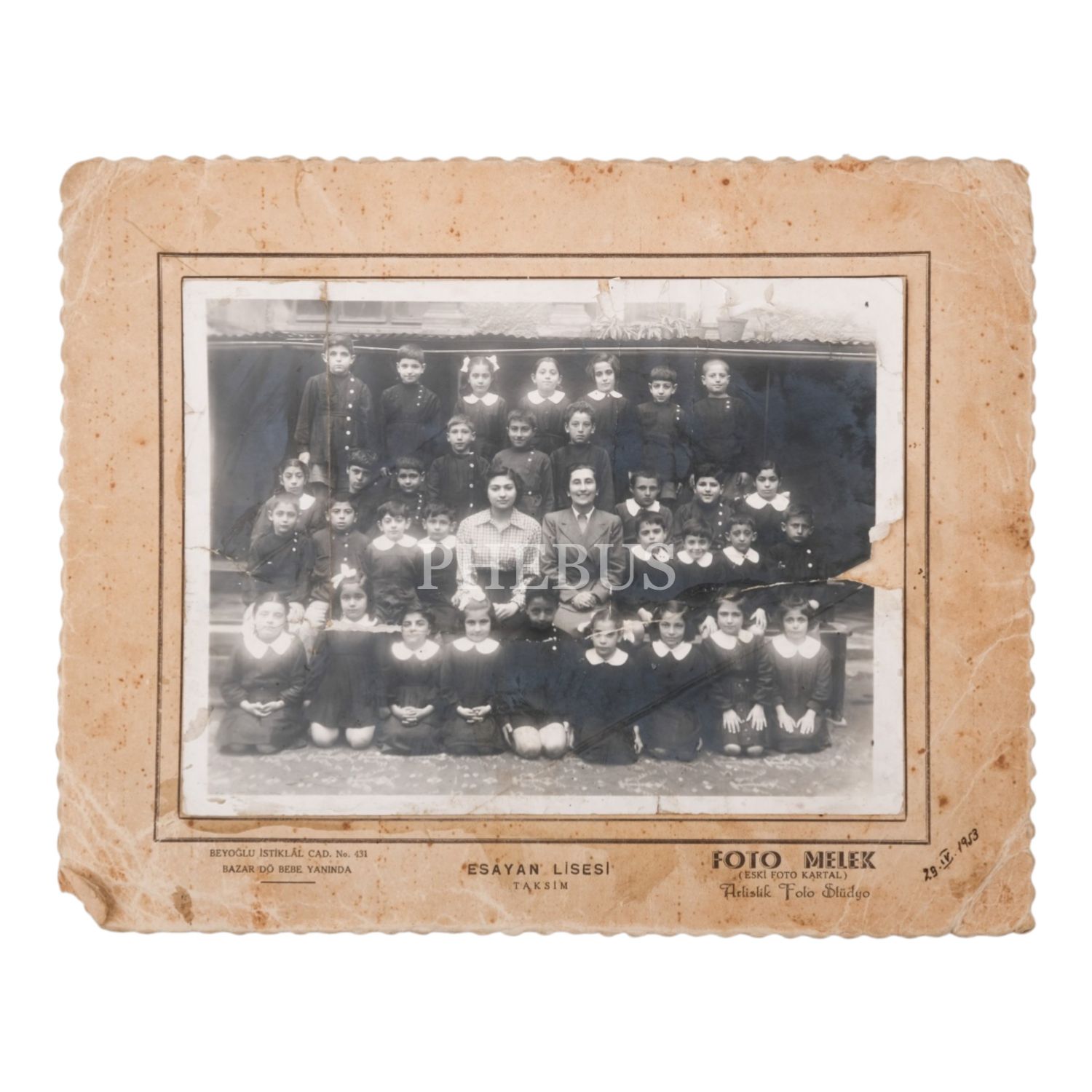 Taksim, Esayan Lisesi öğrencilerinin, öğretmenleriyle birlikte görüldüğü toplu hatıra fotoğrafı, Foto Melek (Beyoğlu), fotoğraf 24x18 cm, paspartu 32,5x26 cm...