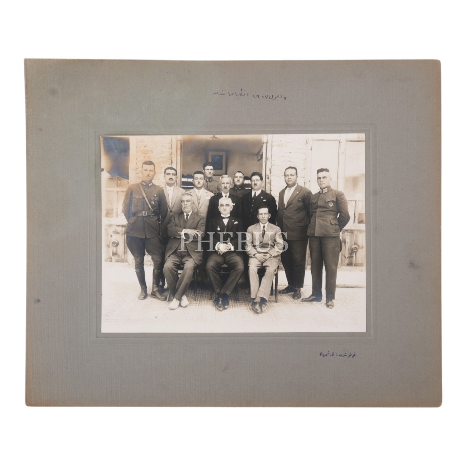 İzmir Alanhisar´ın önde gelen isimleri ve askeri eşrafının 5 Eylül 1927 tarihinde çektirdikleri hatıra fotoğrafı, 36x30 cm...