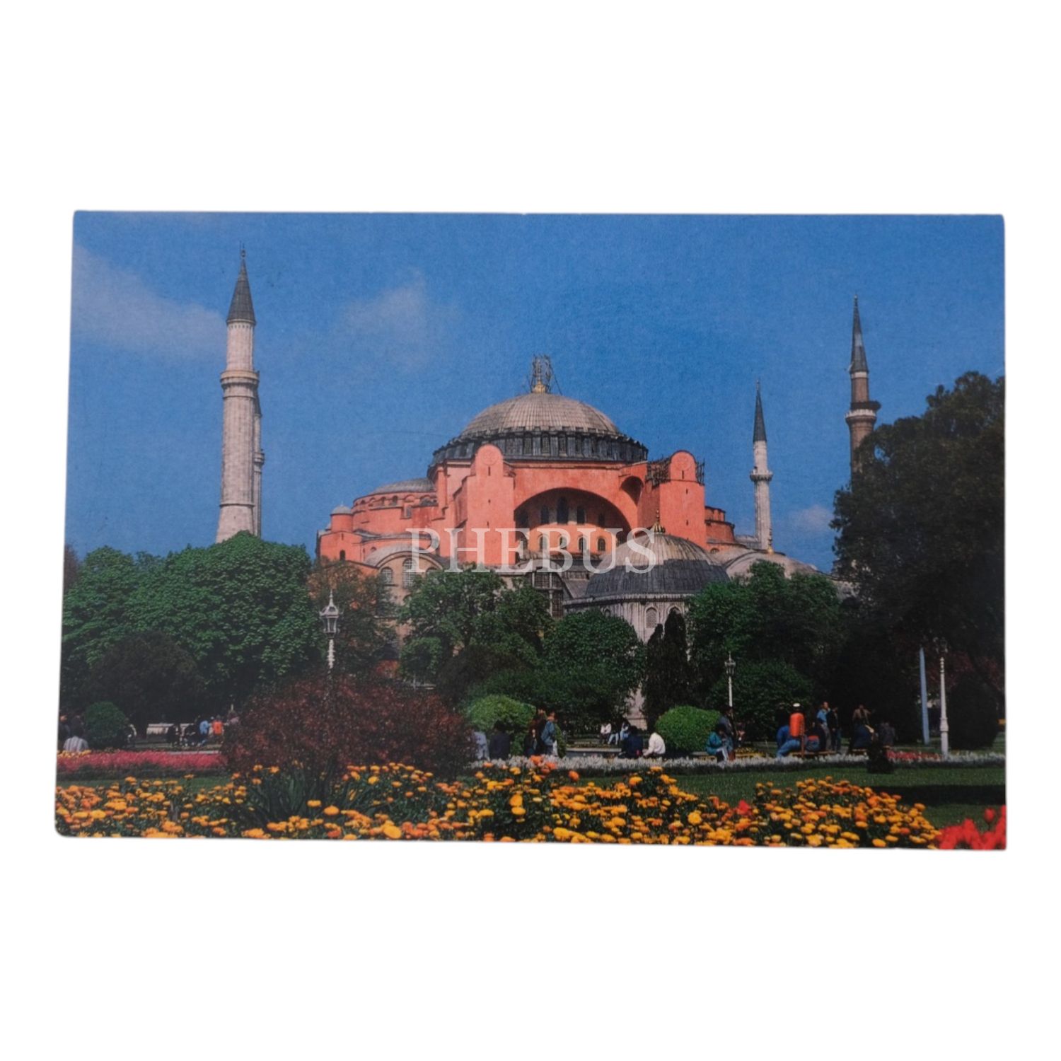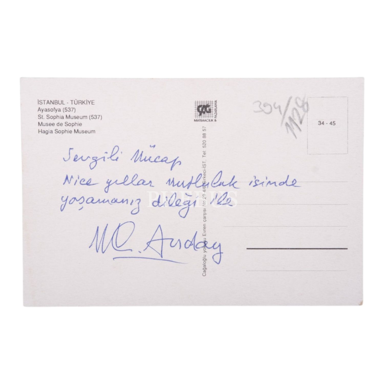 Melih Cevdet Anday´dan yeni yıl tebrikli ve ıslak imzalı Ayasofya Camii kartpostalı, 15x10 cm...
