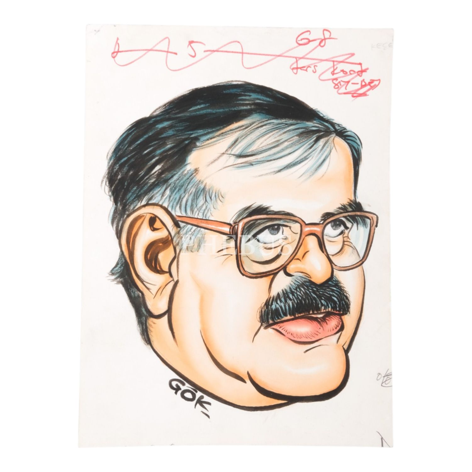 "Gök" imzalı, Mehmet Keçeciler konulu çizim, kâğıt üzerine karışık teknik, 20x27 cm...