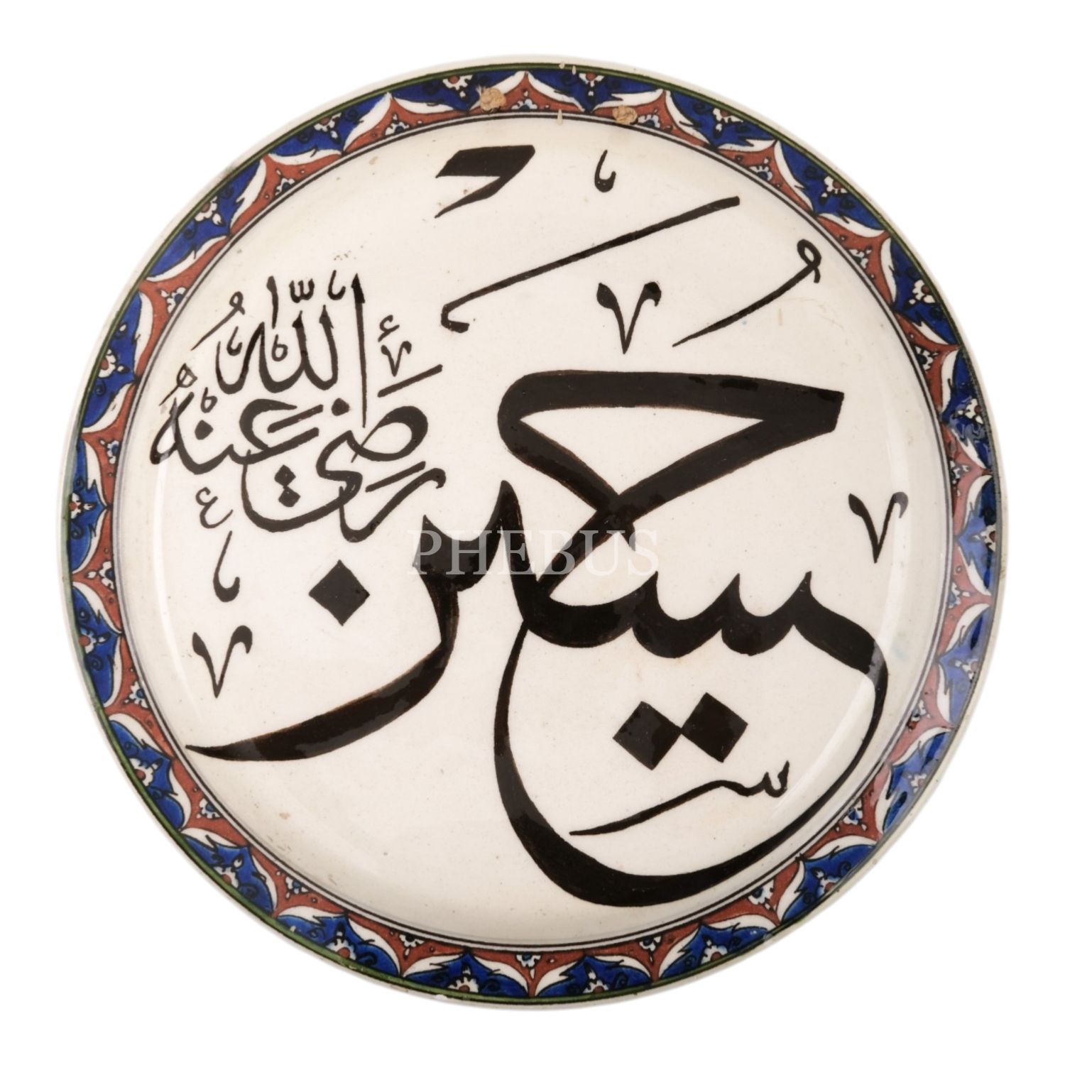 Erken Cumhuriyet döneminden, üzerinde "Hüseyin r.a" yazılı, geleneksel ve floral desenlerle bezeli, kalp şeklindeki porselen duvar tabağı, el boyama, çap 32 cm...